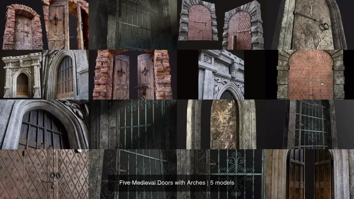 This is collection from five high quality medieval doors and arches. These doors and gates can be used for any modern real-time scenes.Features: