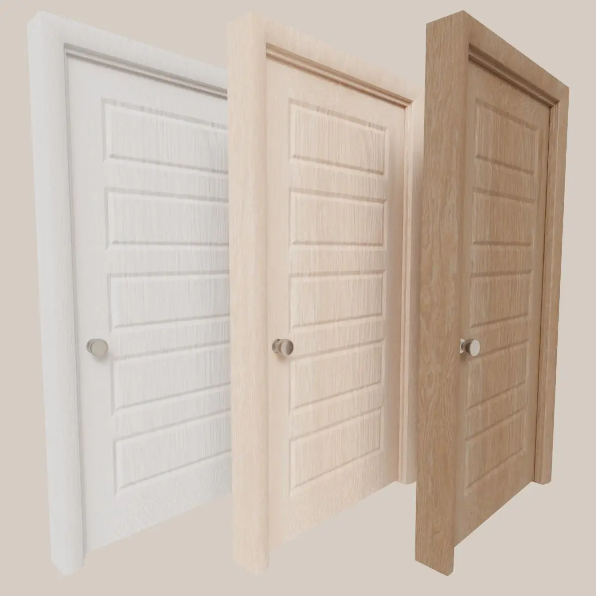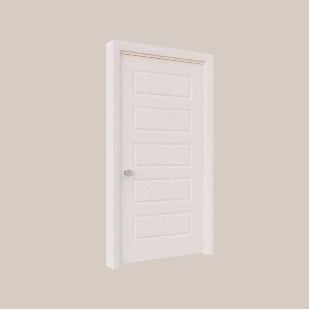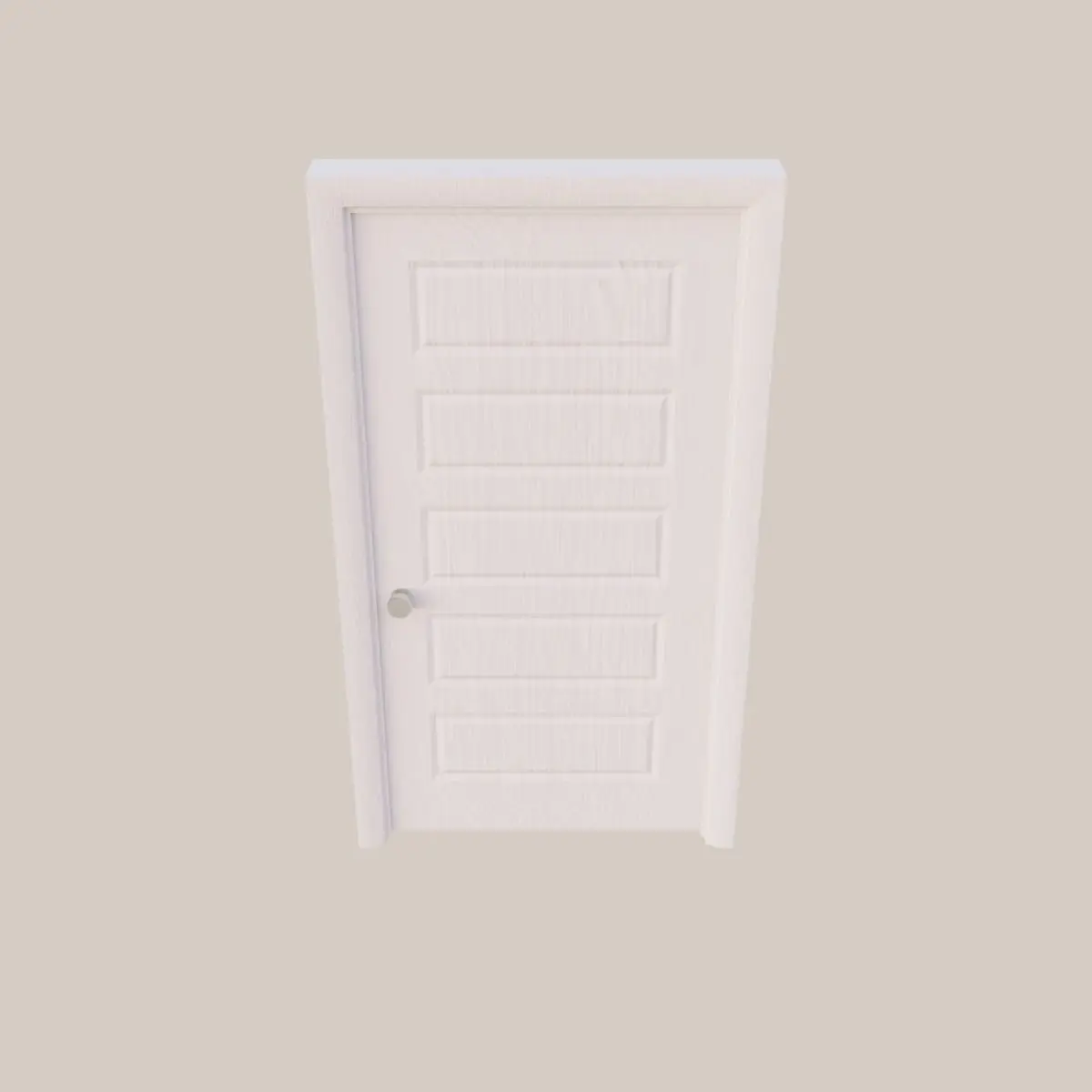 Five Panel Interior Door comes complete with 3 door knobs and hinges. Hinge is attached to both door frame and door itself for realistic animation when opening and closing the door.