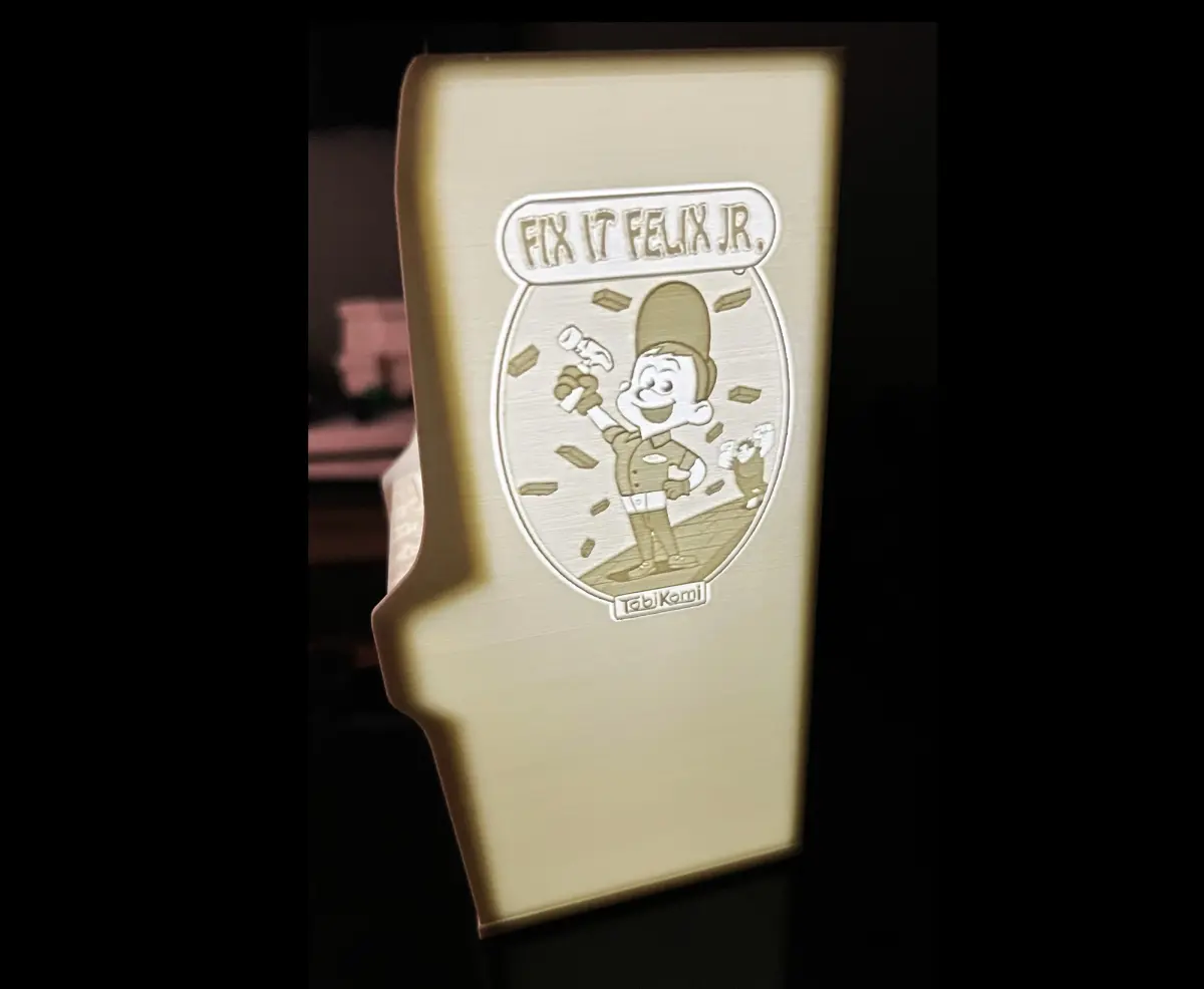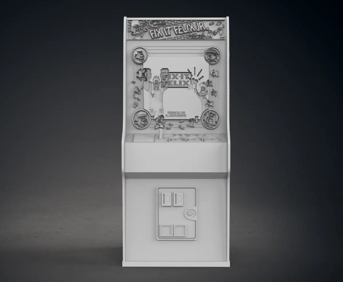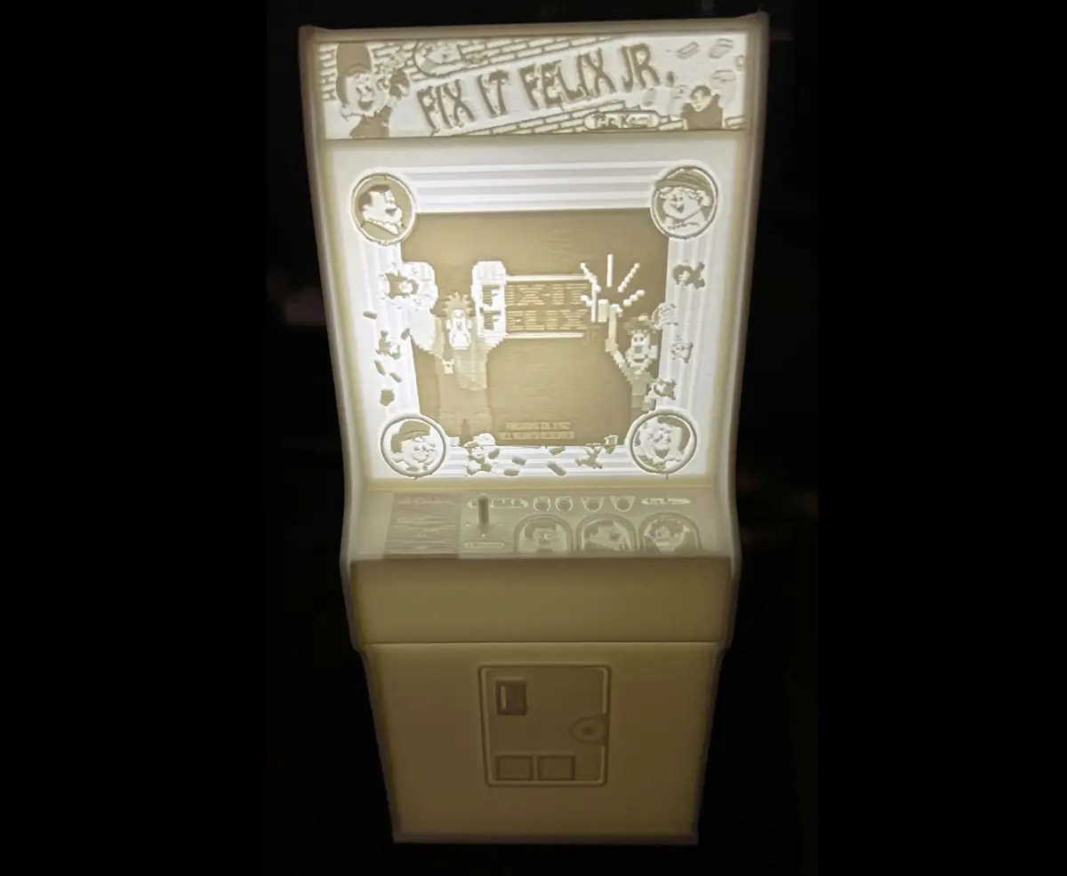 This piece is a themed Fix It Felix Jr. Arcade Cabinet.
