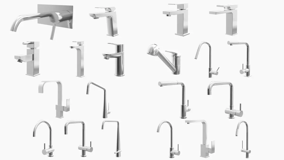 - 4 Materials provided, Chrome, Aluminium, Brass & Matte Black. No Textures required.