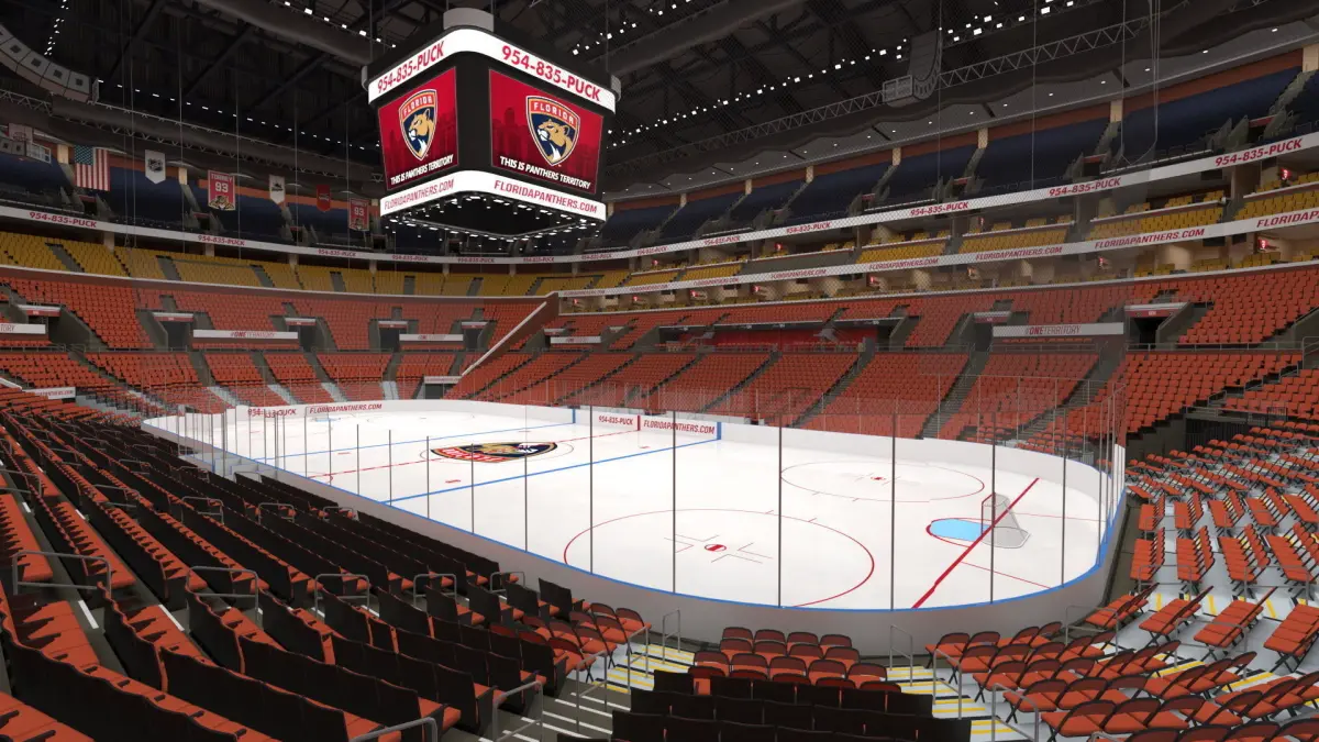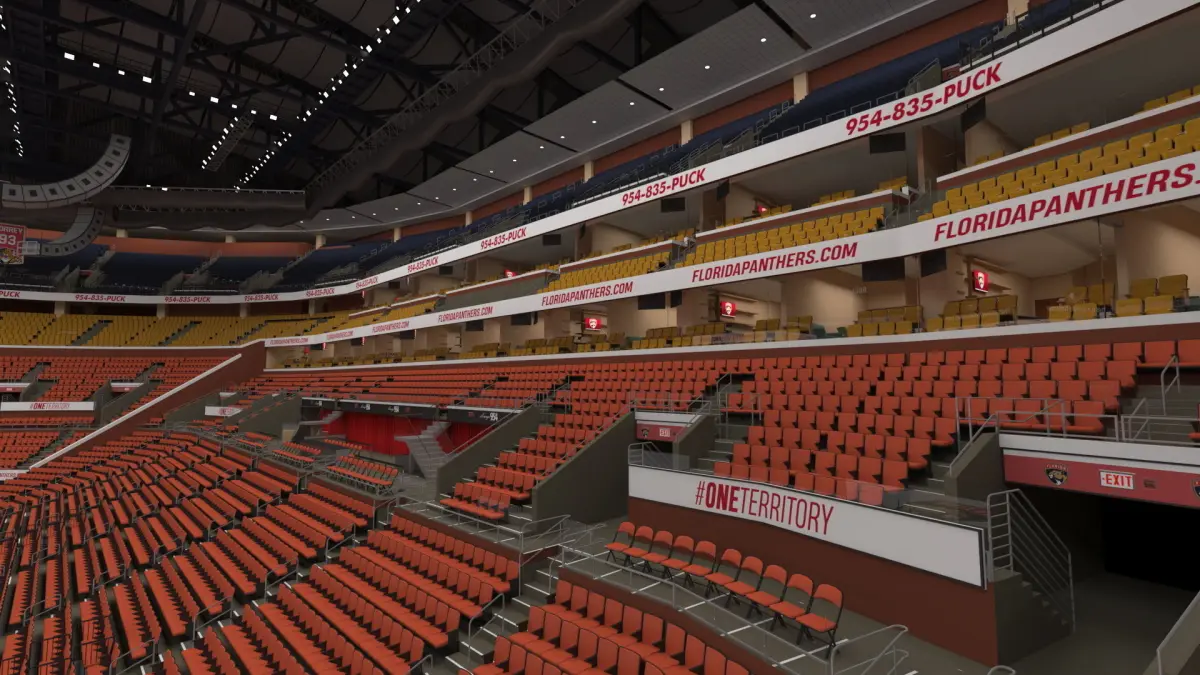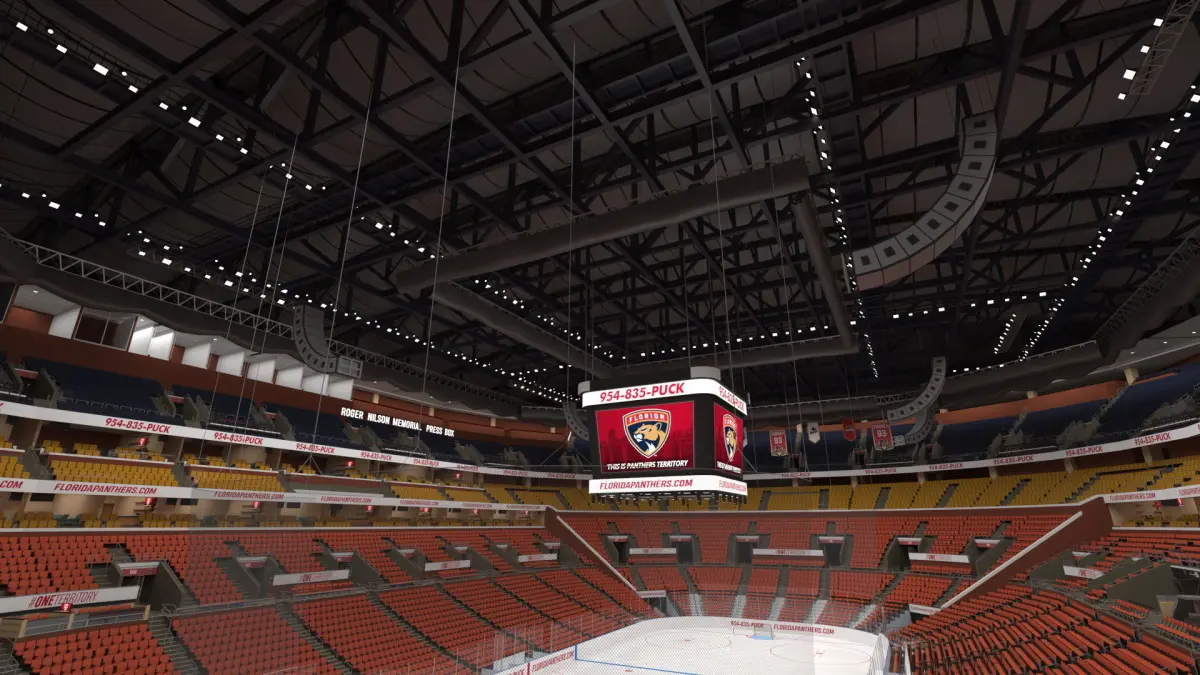 FLA Live Arena Interior Light is a 3D model of ice hockey type FLA Live Arena (multi-purpose indoor arena) which is located in the Sunrise, FL, USA (Florida, United States).The FLA Live Arena interior showcases a dynamic event space designed for immersive experiences. With state-of-the-art audiovisual systems, seating arrangements, and lighting, it offers a vibrant atmosphere for concerts, sports events, and entertainment shows. The arena's layout and technology ensure a captivating and memorable audience engagement. Ice hockey arena which is a facility designed for the sport of ice hockey, and which includes a large, rectangular playing surface made of ice, surrounded by seating for spectators. For winter sports, sports stadium equipment, modern sport venue equipment, hockey championship competitions, public sport event equipment, sport utility constructions, modern sport stadiums, sports show, modern popular sports, and public areas modern architecture constructions promotional projects.