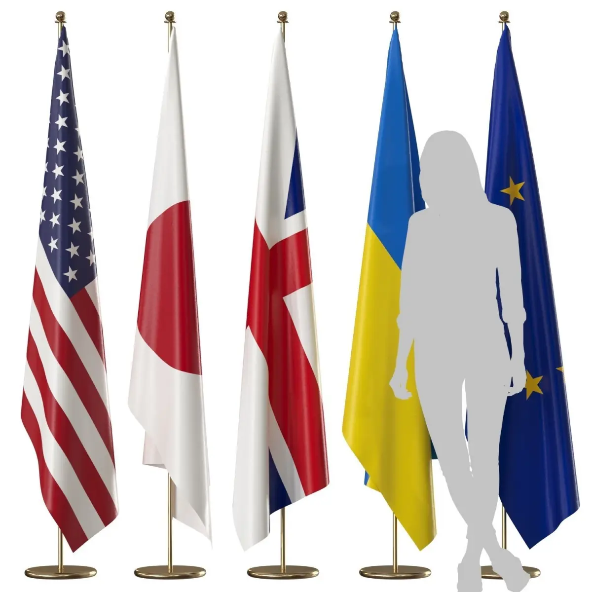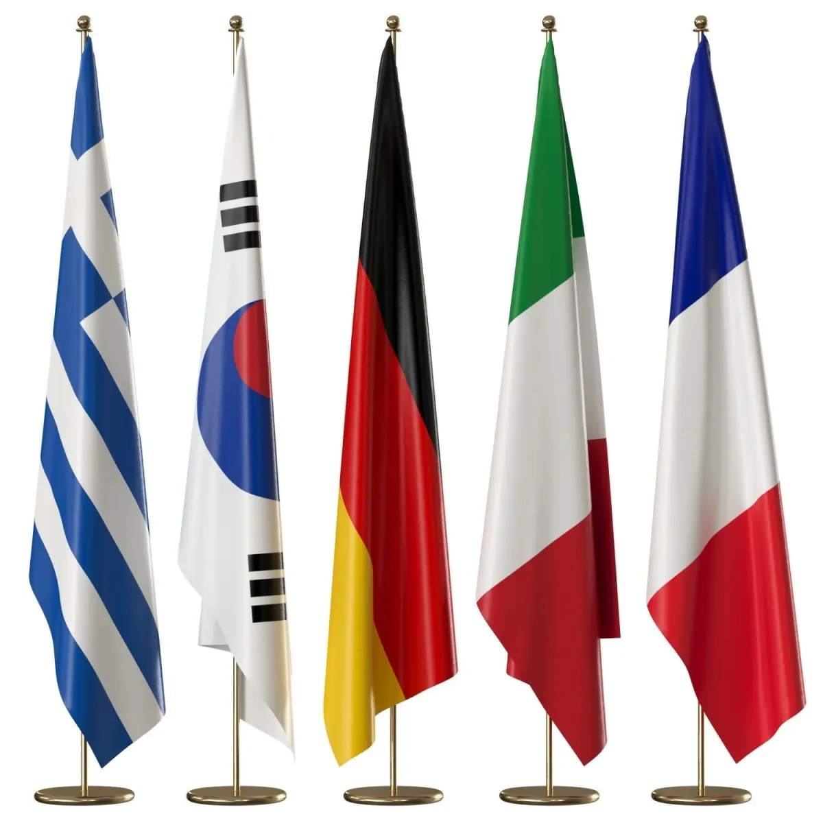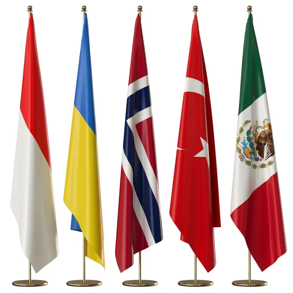 A set of floor flags 2.3m high. To use the desired country, select in the archive. 24 countries are represented in the archive