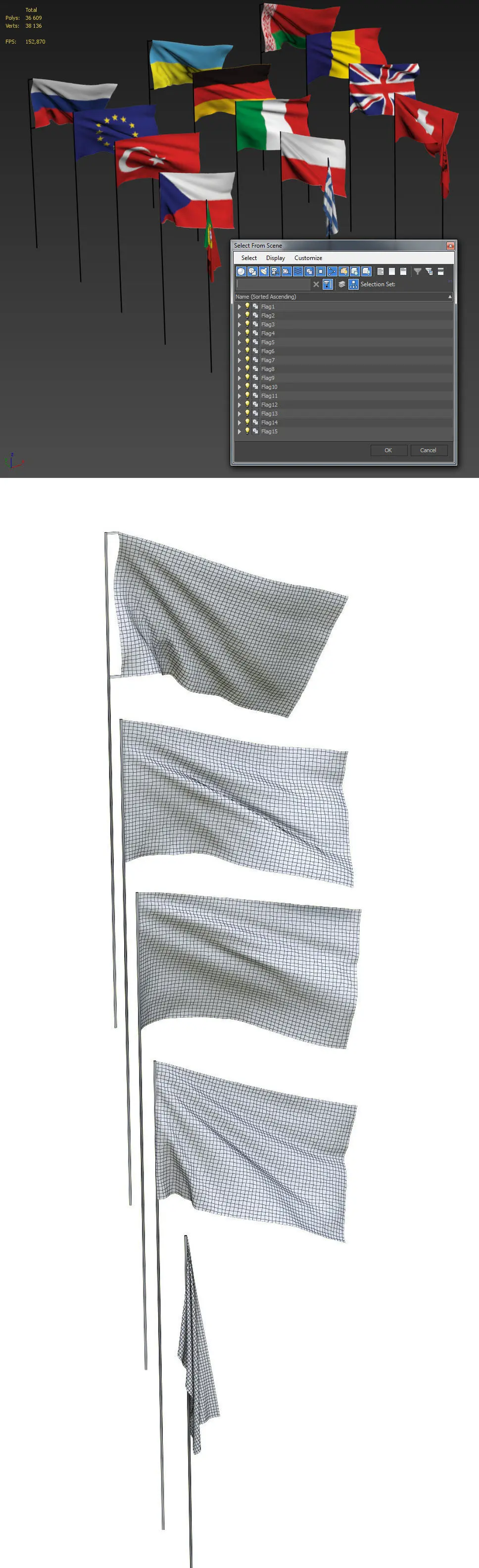 Flags of different countries 15 items 48 maps 3D model
