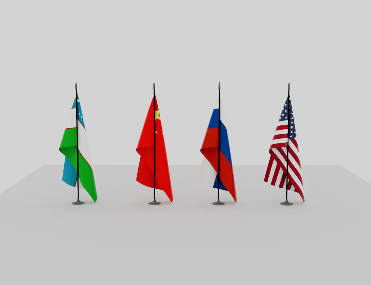 Ready-made 3D models of the flag of the states of the USA, Russia, China and Uzbekistan. Can be used for different scenes, or each flag can be used separately. Made especially for you for free. Use for your project as decor or as a main model.