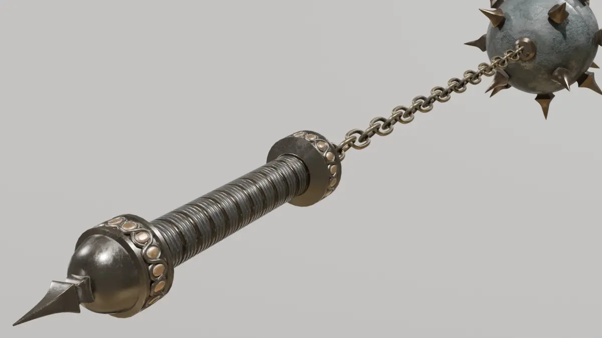 Decorative Elements: engravings or insignias on the handle and spiked ball to enhance visual appeal.Functional Animation: realistic chain movement for dynamic scenes and accurate physics simulations.High-Resolution Model: Constructed with high-resolution polygons to ensure detailed and smooth surfaces, suitable for both real-time rendering and high-quality offline renders.