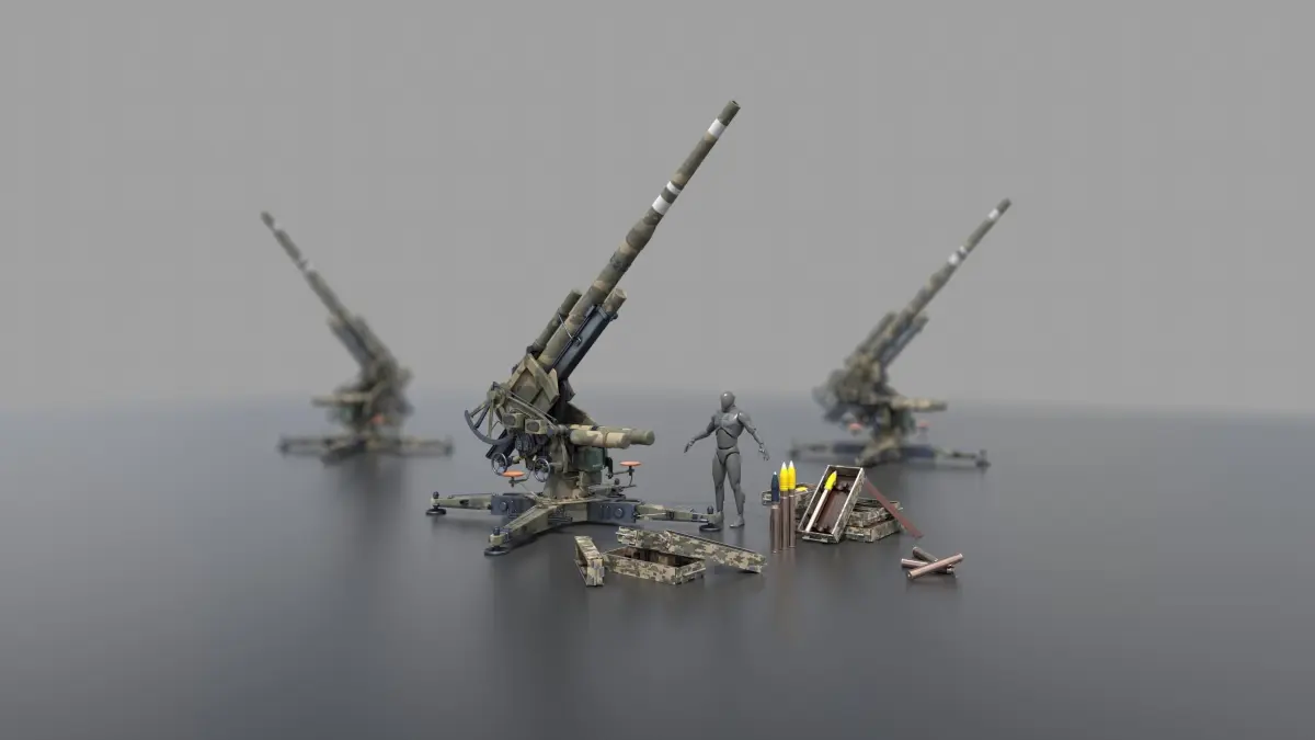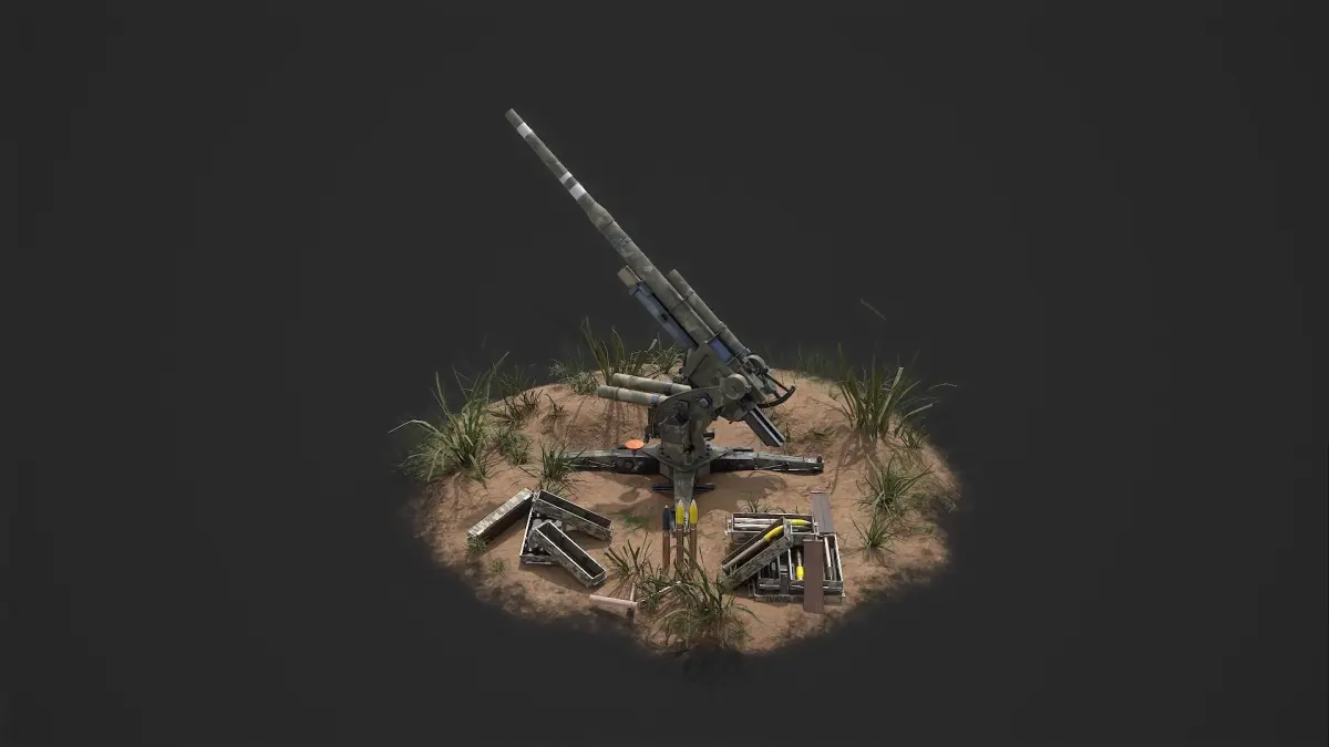 Flak 88 Anti-Aircraft and Anti-Tank Gun 3D Model. This model is meticulously designed and rigged using Autodesk Maya.