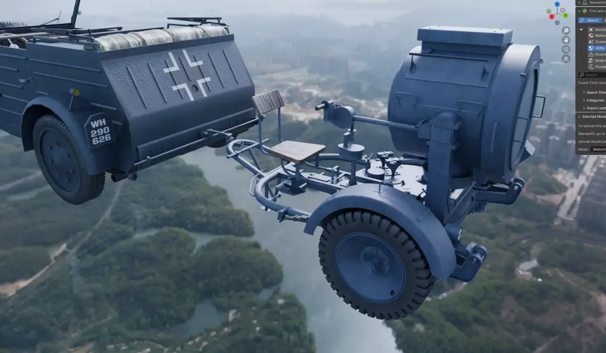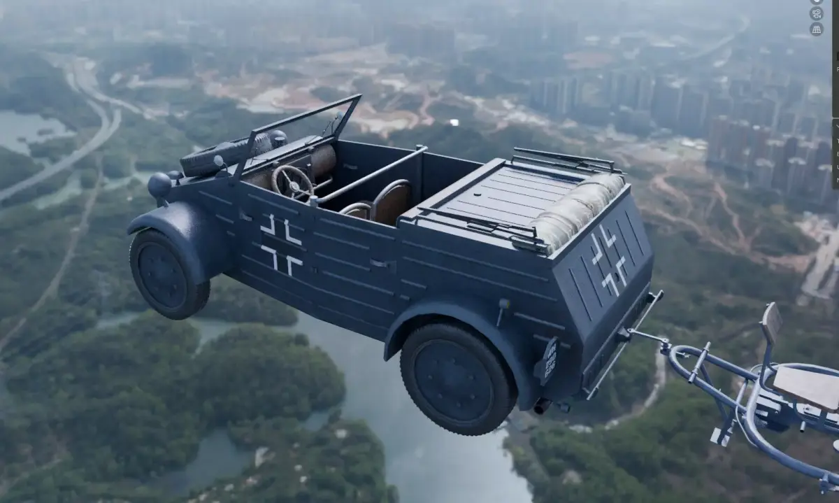 Flak Sw 36 Flakscheinwerfer with Kubelwagen for print, game.