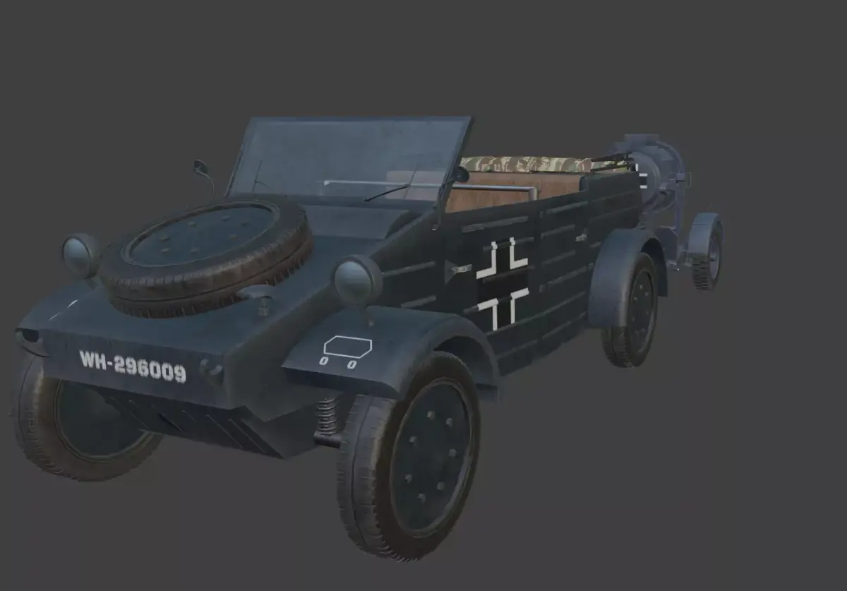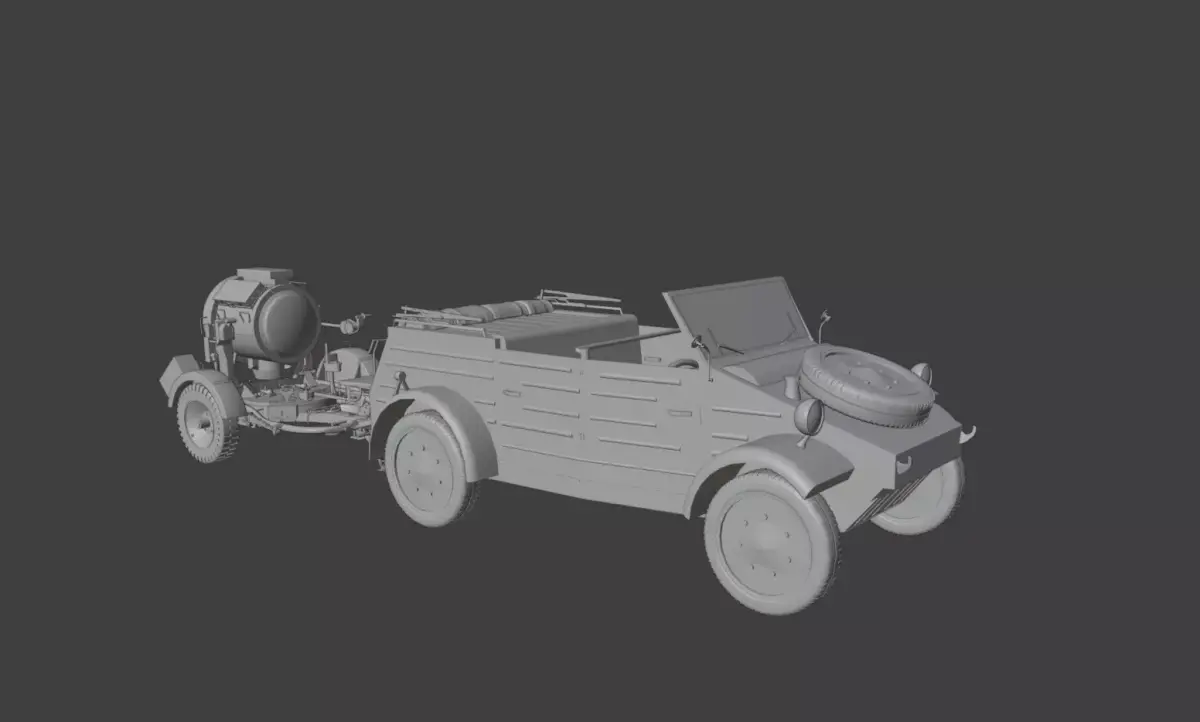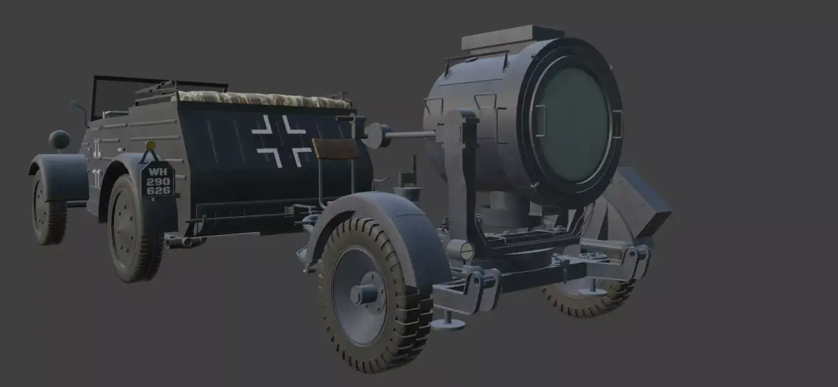 Flak Sw 36 Flakscheinwerfer with Kubelwagen for print, game.