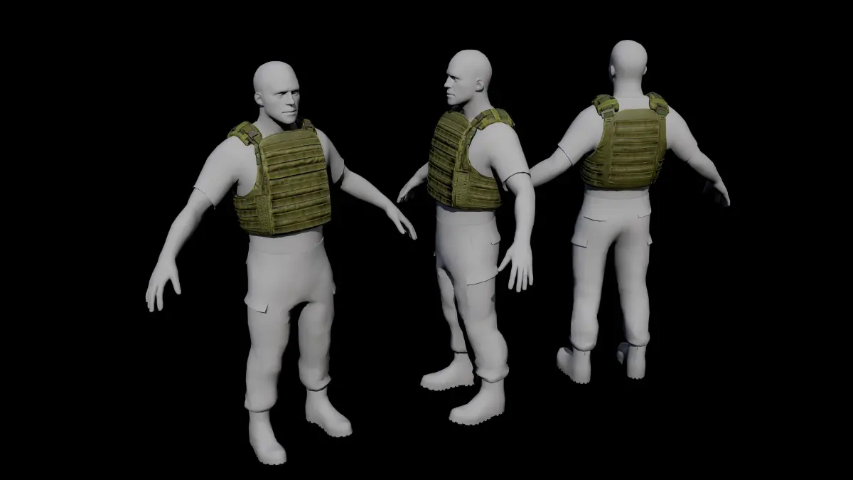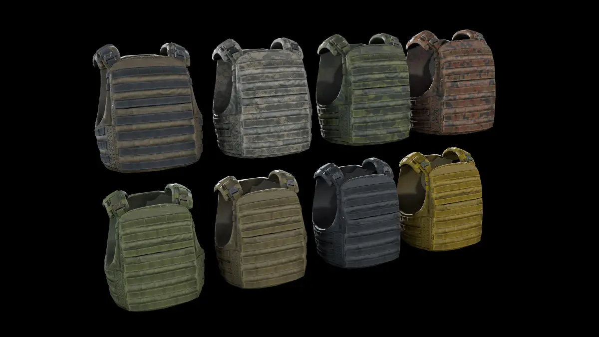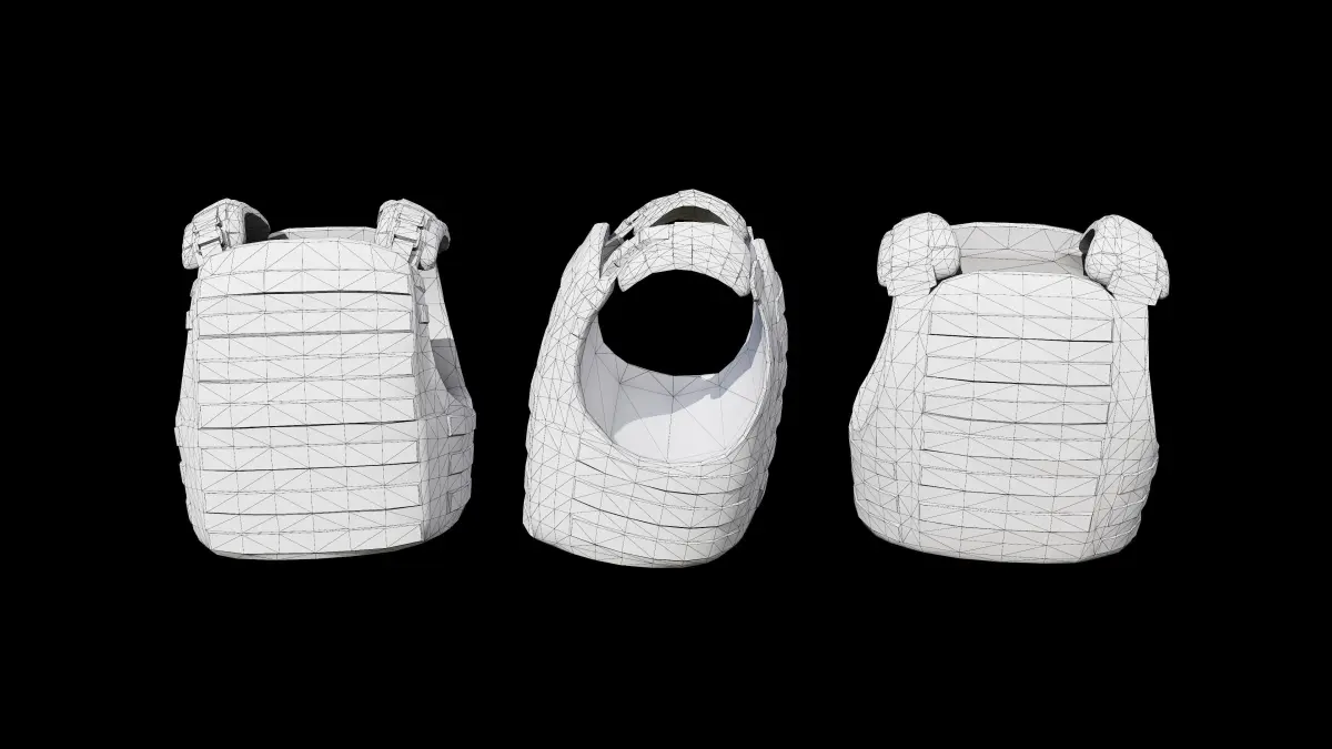 Lowpoly, flak vest 3d model with PBR textures, rigged.