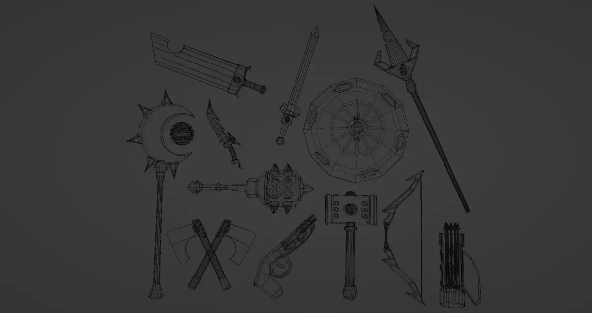 • Flame Weapons Set Low Poly 3D Model (FBX. / OBJ. / MTL. / GLB. GLTF. / STL. / Blend File Formats Attached).