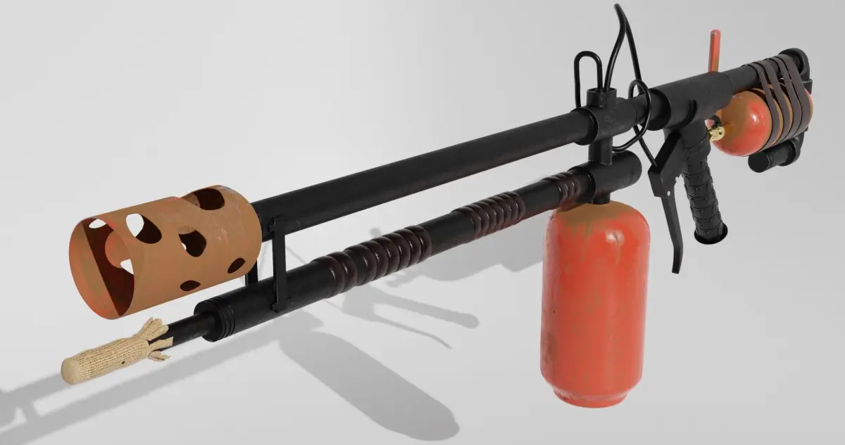 A flamethrower is a ranged incendiary device designed to project a controllable jet of fire. First deployed by the Byzantine Empire in the 7th century AD, flamethrowers saw use in modern times during World War I, and more widely in World War II as a tactical siege weapon against fortifications.Most military flamethrowers use liquid fuel, typically either gasoline or diesel, but commercial flamethrowers are generally blowtorches using gaseous fuels such as propane; gases are safer in peacetime applications, because their flames have less mass flow rate and dissipate faster, and often are easier to extinguish when necessary.Apart from the military applications, flamethrowers have peacetime applications where there is a need for controlled burning, such as in sugarcane harvesting and other land-management tasks. Various forms are designed for an operator to carry, while others are mounted on vehicles.