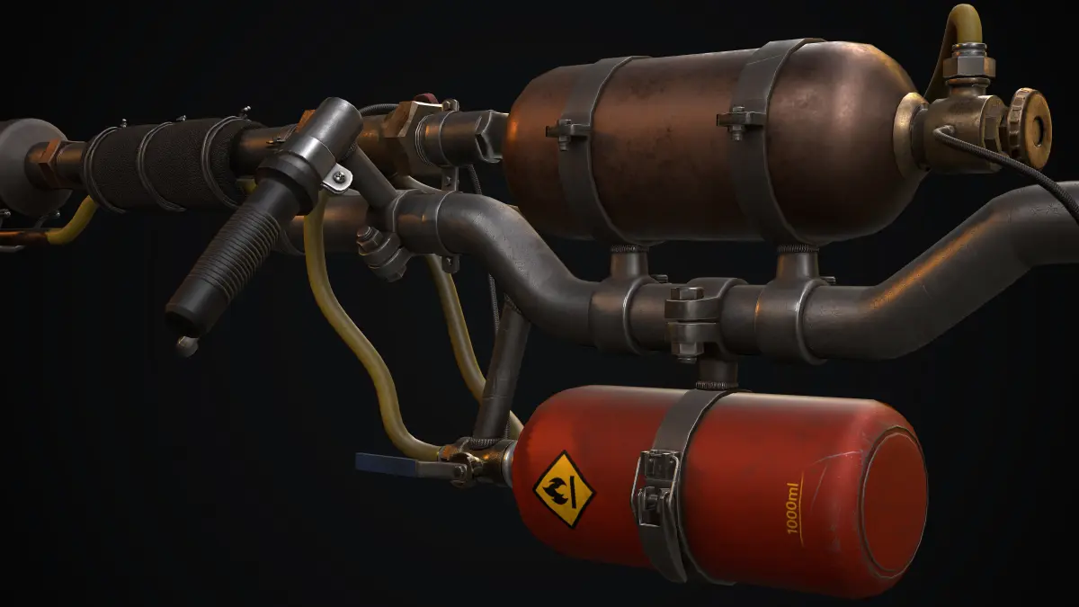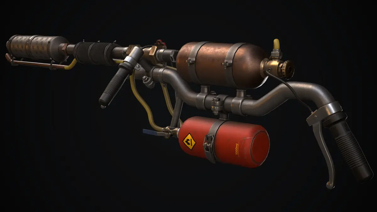 Ready to render at MAYA.and marmoset.game ready gun Gun name= Flamethrower gunthis is low poly model this model made by Maya 2022 . Softwere used = Maya 2022*Render * = marmoset file available = OBJ , AND ,FBX ,MTL and all texture available .texture used (unreal engine 4 packed)TRIS: 53052EDGES: 55209