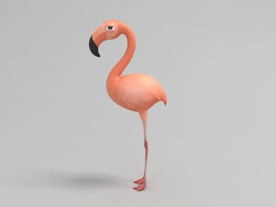 Flamingo character 3d model in cartoon style. Preview images are rendered with Vray.