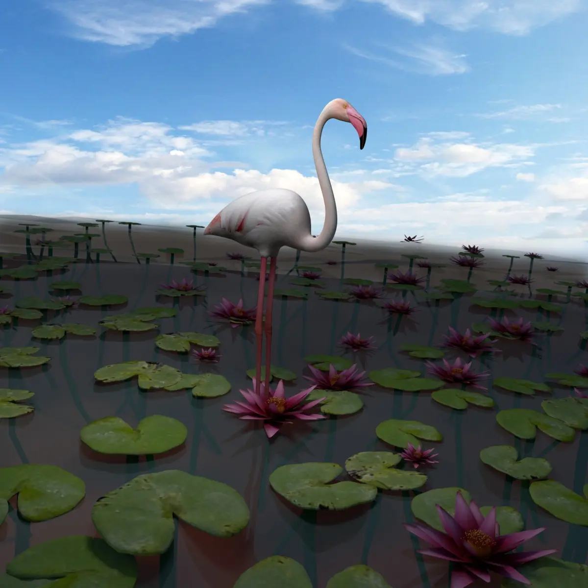 Rigged flamingo model created in Blender 2.74 with photography references.