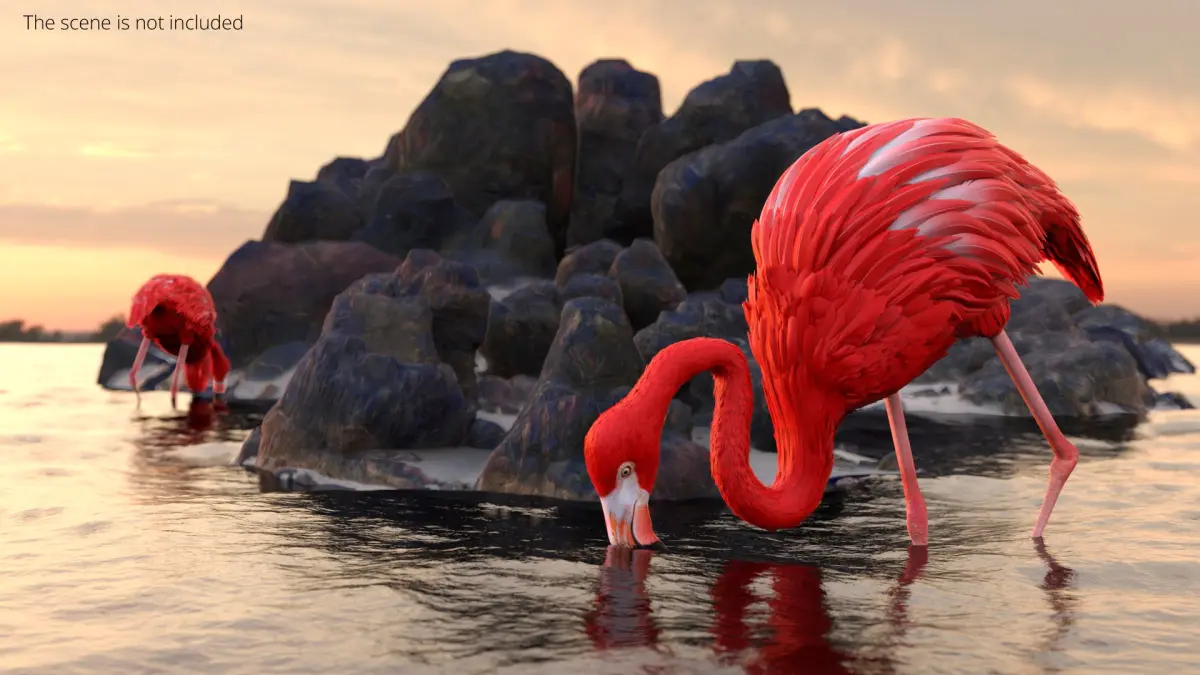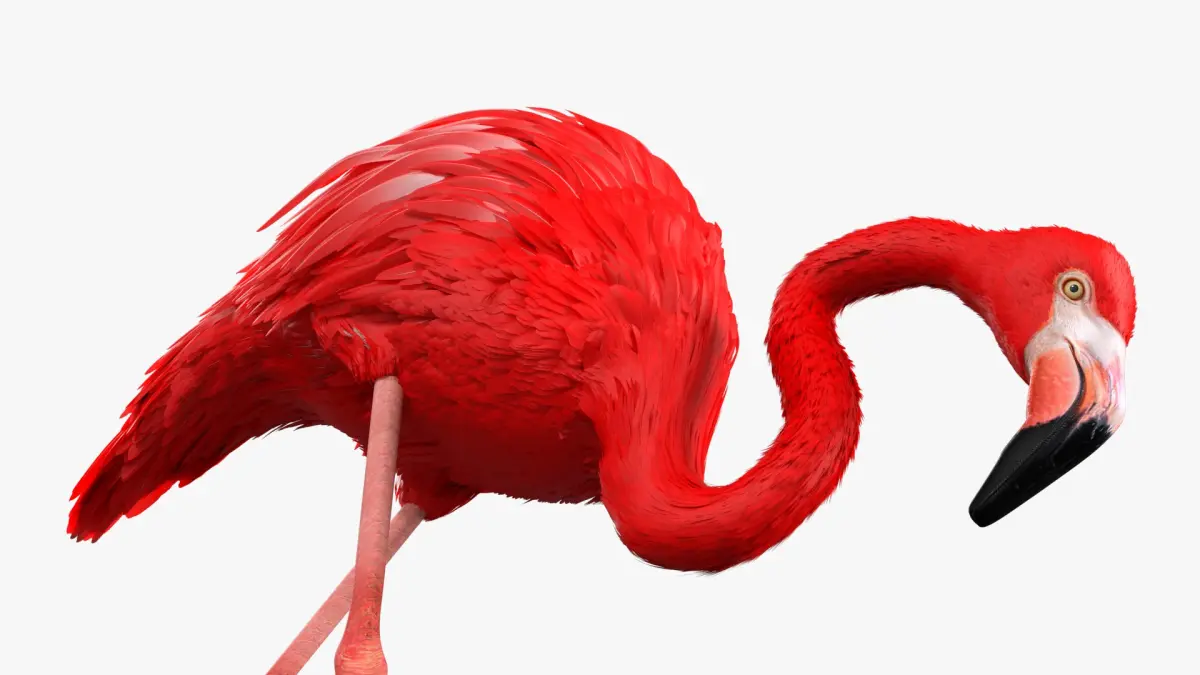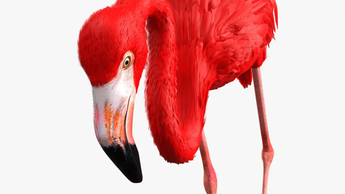 Flamingo Red Tropical Foraging Pose is a three-dimensional model of large wading bird, that is a distinctive species recognized for its pink plumage and long legs.