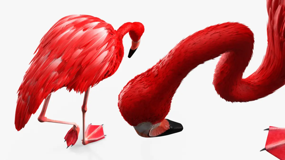 Flamingo Red Tropical Foraging Pose is a high quality, photo real 3d model that will enhance detail and realism to any of your rendering projects. The model has a fully textured, detailed design that allows for close-up renders, and was originally modeled in 3ds Max 2020 and rendered with V-Ray. Renders have no postprocessing!
