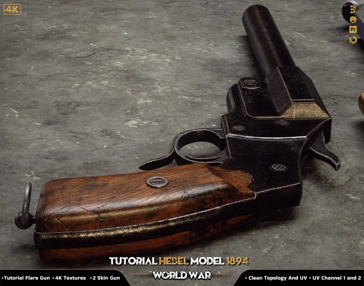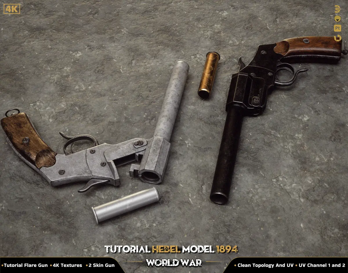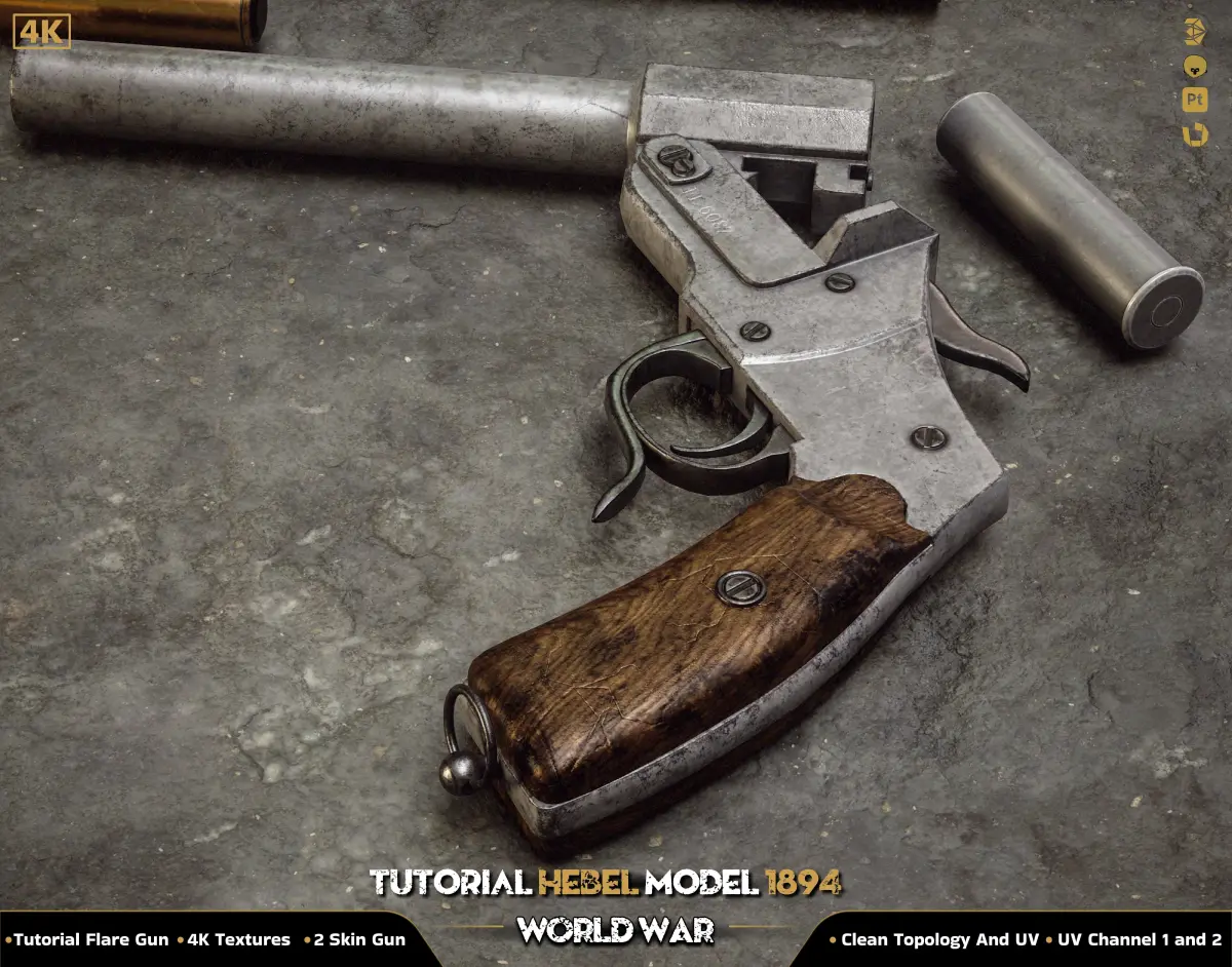 This product includes complete modeling, texturing, rendering and 3D models of the flare gun from the World War.