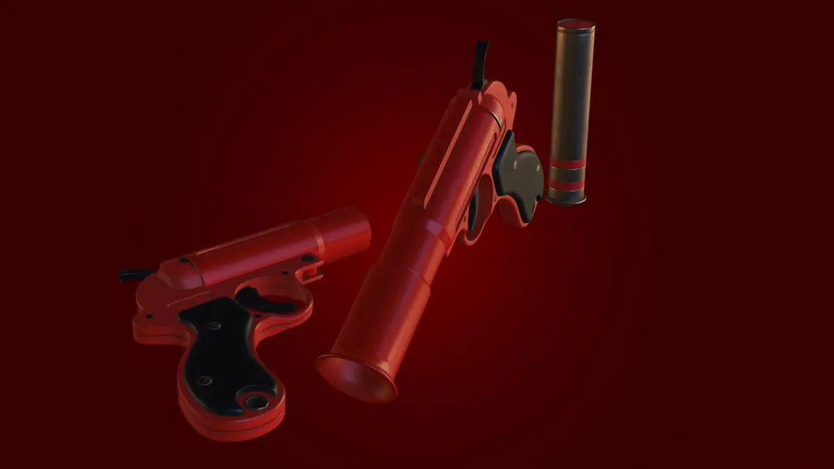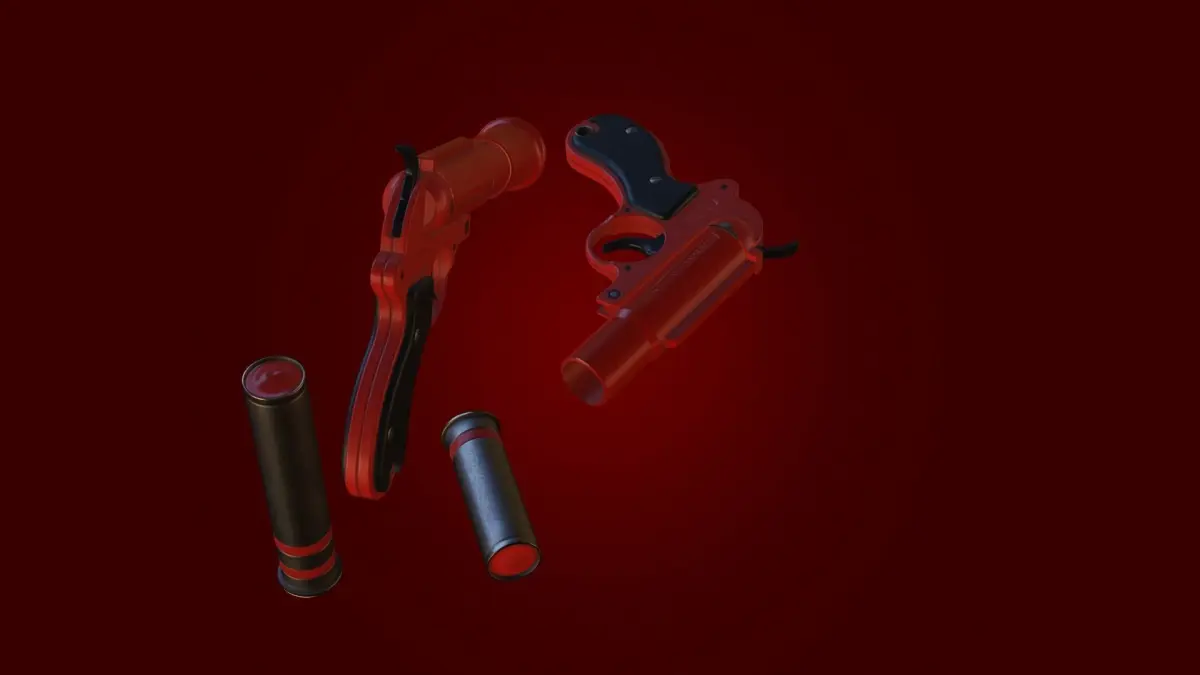 The flare gun has UV and texture, there are two cartridges and two pistols.