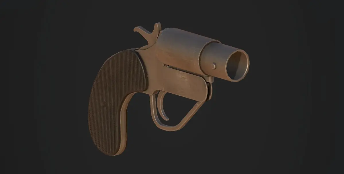 Low poly game-ready 3d model of a flaregun.modelled after a real-life version of the flaregun from the 1950s.Fully unwrapped, PBR ,2k textures, 2800 polygons.Textures include:Unreal packedunity5 packedUnity HDRPand standard substance textures