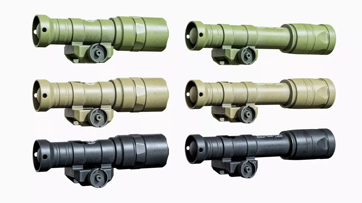Game-Ready high-quality 3d model Tactical Flash Light SureFire M300c Compact Led and Flash Light SureFire M600v Led IR for Unreal Engine, Unity and other PBR game engines, renderers, first Person Shooters, VR games, and your other projects.Created with precision, this asset features PBR textures, ensuring stunning realism and high-quality visuals. Fully rigged and ready for animation, it’s optimized for both Unreal Engine and Unity, making it easy to integrate into your projects. Whether you're working on a first-person shooter, military simulation, or any other game involving firearms, this model will enhance the authenticity of your scenes.