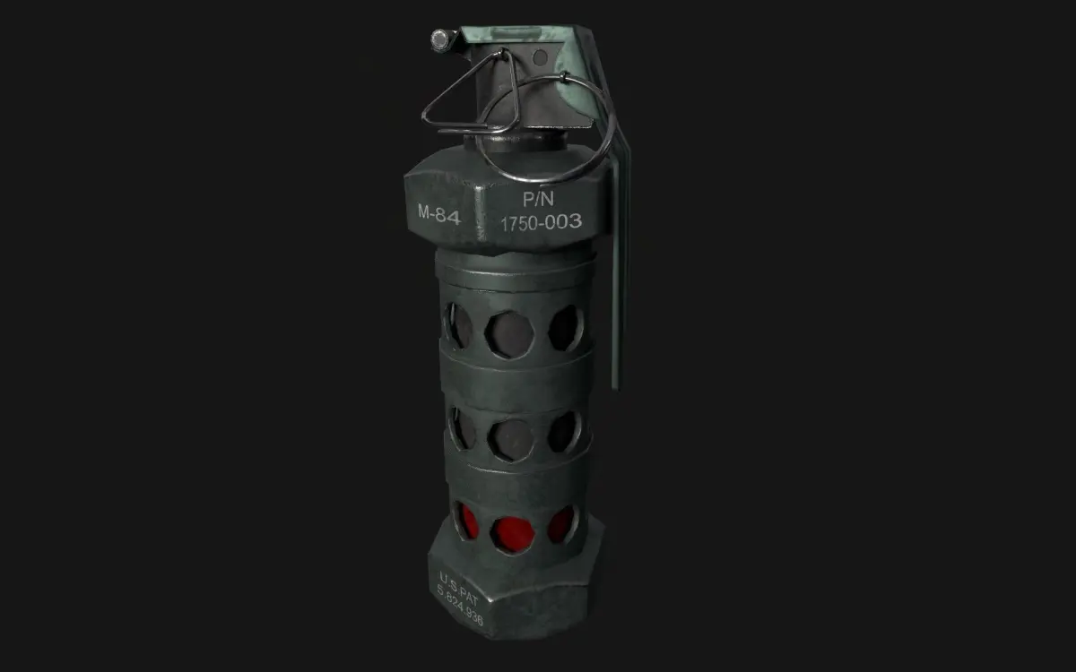 Flash M-84 grenade. I created this model for testing purposes. It has one material and one UV map. Texture maps - 4k, for UE and Unity. Maps in .tga formats. Grenade - 1.7 faces.