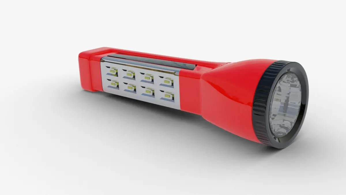 A realistic model of a plastic/metal Flashlight LED Solar Power.