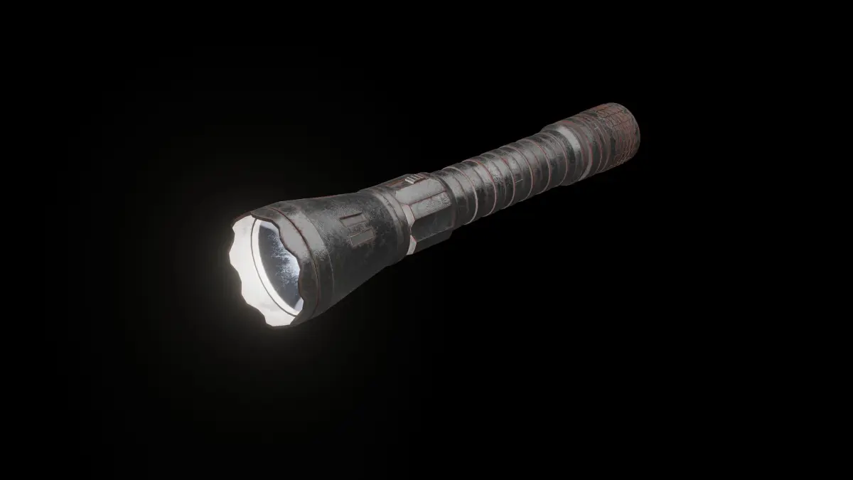 -This flashlight was modeled with blender 3D 3.2.1.-UV mapping was done with care.-Material and object names have been edited in English.-The model was prepared as low-poly with meshes.-The coatings were made with substance painter and processed on the model again with a blender.