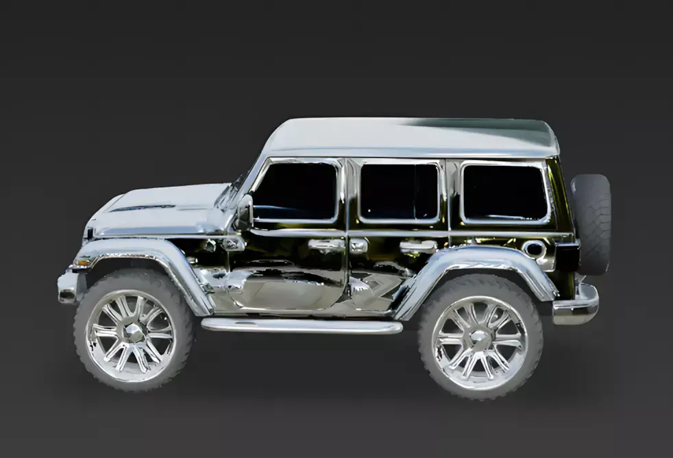 The Overall Concept This asset is the ultimate show car. It is a rugged Jeep SUV that has been turned into a dazzling piece of jewelry, designed to catch every eye on the street with its blindingly shiny finish.