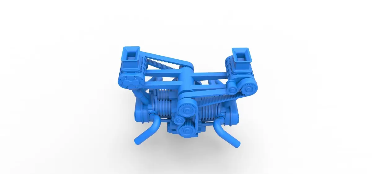 Flat 4 engine with double supercharger Scale 1 to 25 3D print model