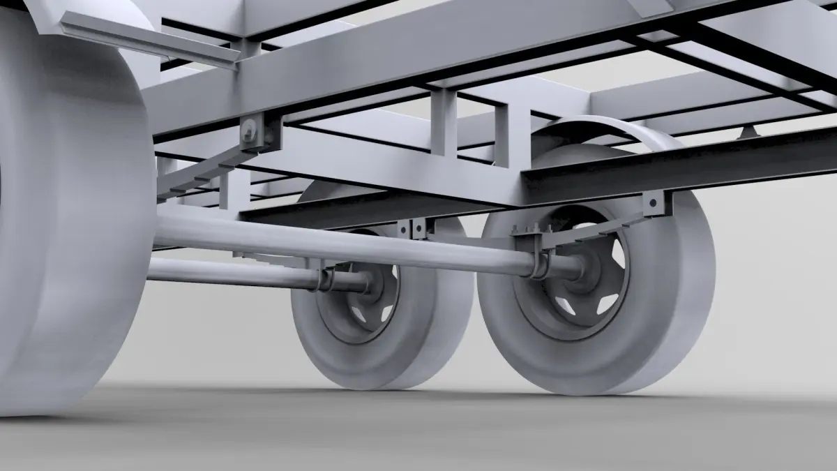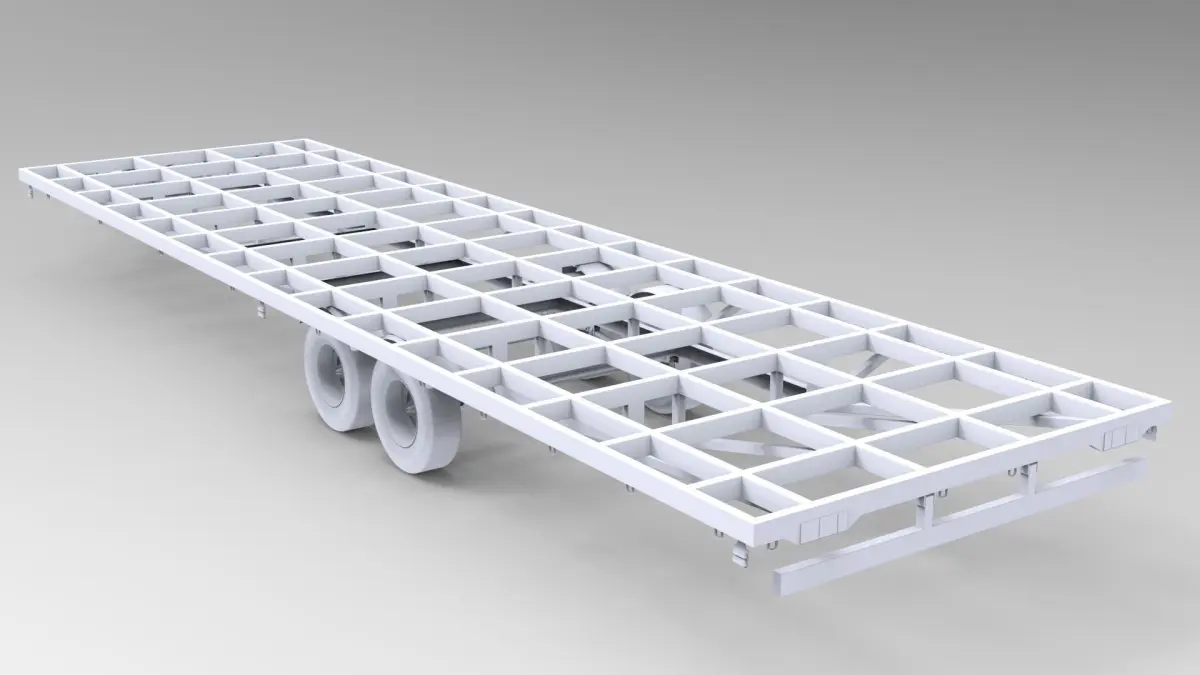 Carretón acoplado de 2 ejes de 10,75 m de longitud con las medidas correctas para simulaciones logísticas.