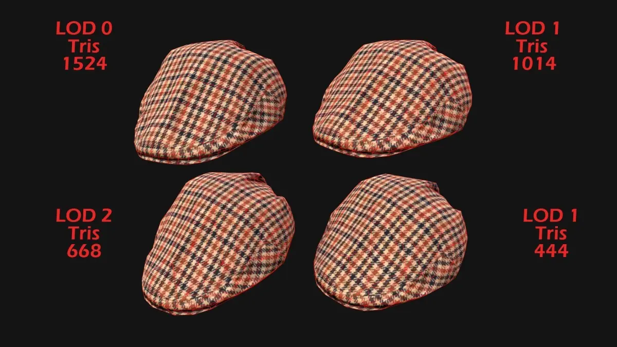 Game ready model.Stylized and detailed Flat Cap fully textured, sculpted and rendered with Physical based rendering (PBR) - Shown images have been rendered in Marmoset Toolbag .The models contains lods, detailed information on the images.