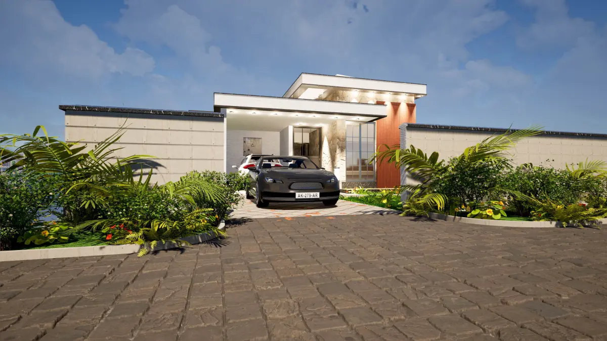 This 3D model represents a flat-roofed 3-bedroom bungalow with interior partitions and basic furniture. It was initially created using Archicad, an architectural design software, and subsequently exported to Unreal Engine. Native files are available upon request. For further inquiries, don't hesitate to get in touch with us via WhatsApp at +254718444520. A video render of the entire project can be viewed here: https://youtu.be/kCSjOD7er6U