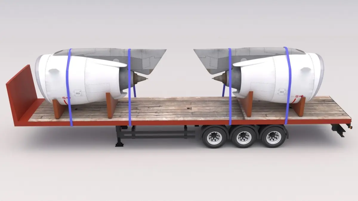 High detailed Flatbed Trailer with Jet Engines.Included: