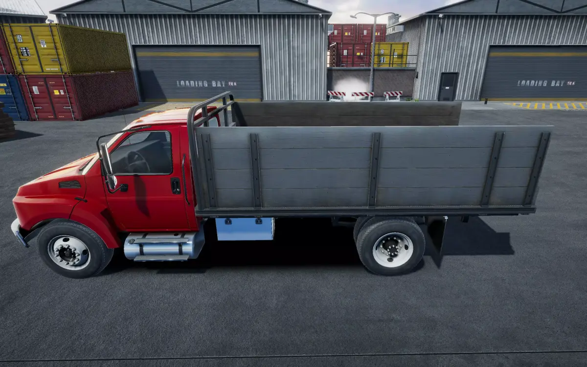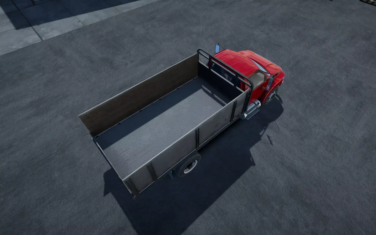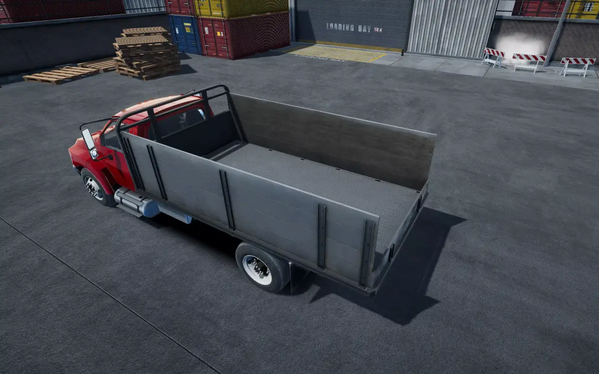 Modern flatbed truckThis model was created for 3d camera view, but also it have lowpoly interior with seats and steering wheel.Body model with smooth topology, 3d seams, small parts like wipers, hanles, hinges etc.Car body - 42720 tris and 27518 verts.Wheels - 16466 tris and 9502 verts.This model have separated steering wheel, lights glass, windows and license plates.Two types of rear suspension - single axle and double axles.Hood, doors, rear doors do not open.Model comes with shadowplane.No LODs.All screenshots from Unity, with Post Procecessing Package.