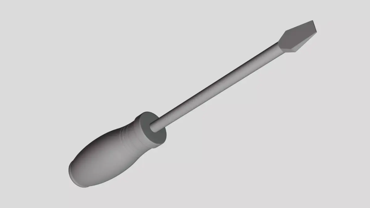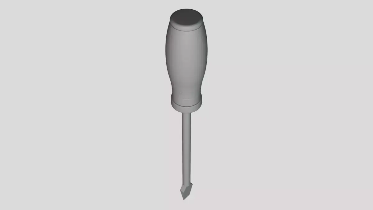 3D model of a flathead screwdriver featuring handle grip and metal shaft. Suitable for workshop scenes, repair tool visualization, and hardware product mockups.