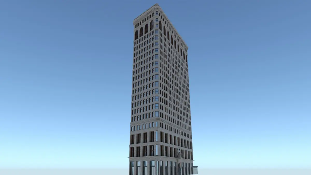 The Flatiron Building, originally the Fuller Building, is a triangular 22-story, 285-foot-tall steel-framed landmarked building located at 175 Fifth Avenue in the Flatiron District neighborhood of the borough of Manhattan, New York City.