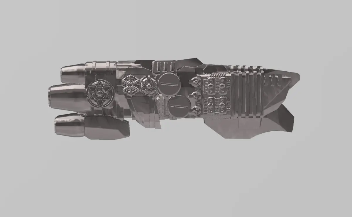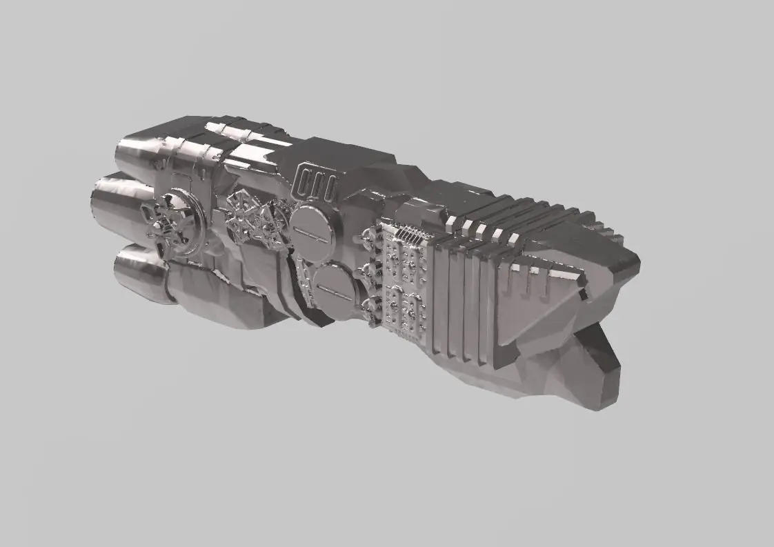 This FILE PACK contains: 1 highly detailed .STL FILE of the ship.1 highly detailed .STL FILE of the ship with 3mm flight peg mount hole.3 highly detailed STL FILES of M2, T4, and T8 USDF DECK WEAPONS