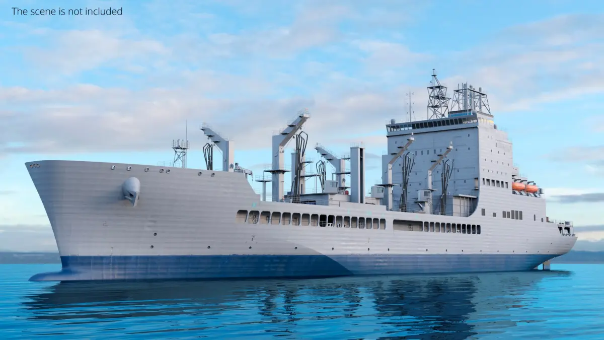 For maritime visualization, naval logistics training, fleet replenishment simulations, defense project renderings, oceanic engineering studies, ship design education, naval architecture modeling, and realistic sea environment scenes.