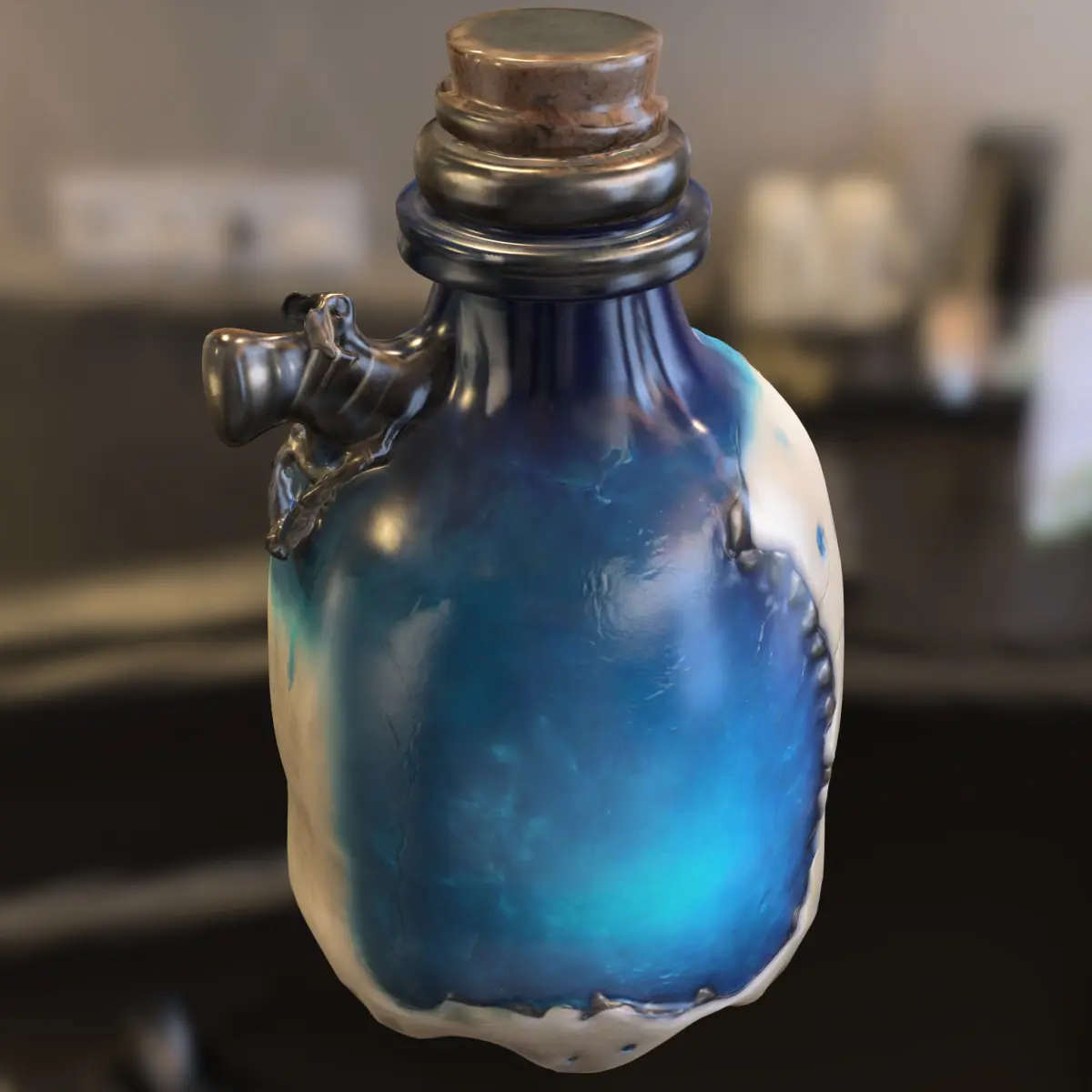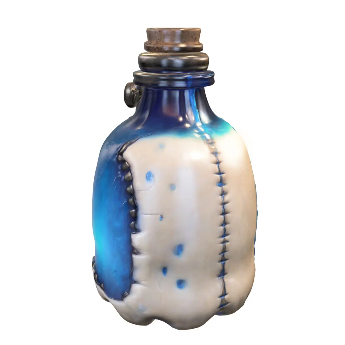 A grotesque and detailed 3D model of a stitched potion bottle made from a mix of organic textures and glowing blue essence. This asset is perfect for horror, dark fantasy, and necromancer-themed environments in games such as Dark Souls, Bloodborne, Diablo IV, Elden Ring, or Path of Exile. Designed for use in both in-game inventory systems and 3D printing, this bottle adds a sinister and immersive touch to your scenes. Available in multiple formats: OBJ, FBX, STL, DAE, PLY, and GLB, ensuring wide compatibility across platforms like Unity, Unreal Engine, Blender, and 3D print services.