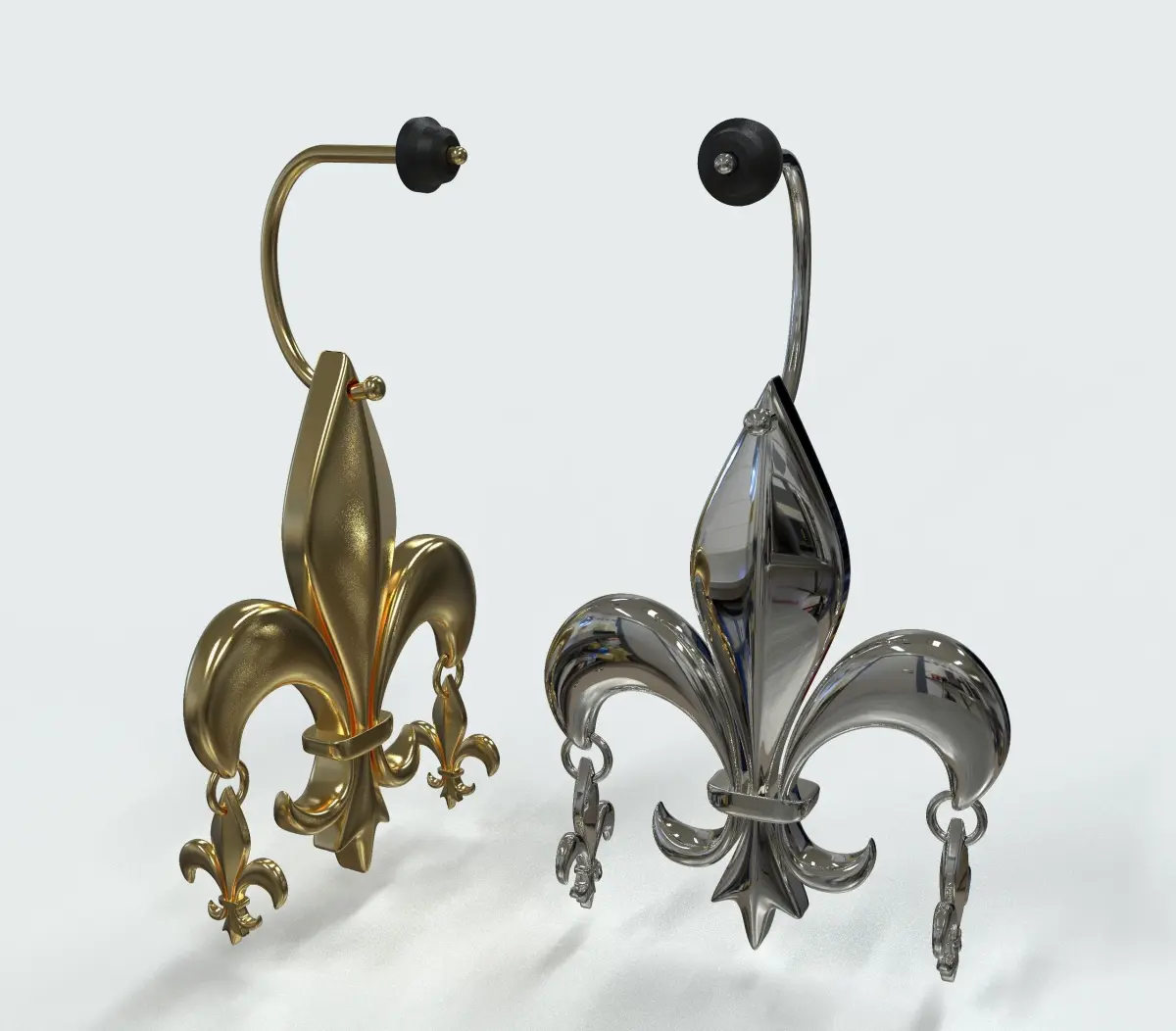 I try to make a earring with combining this historical symbol fleur de lis or de lys, it's a power, honor, grandeur, faith and unity symbol, and it's a legend sign for many cultures.the parts are completely separate from each other so you can remove the one you don't need.you can ask for a original file to make your own fleur de lis jewelry.