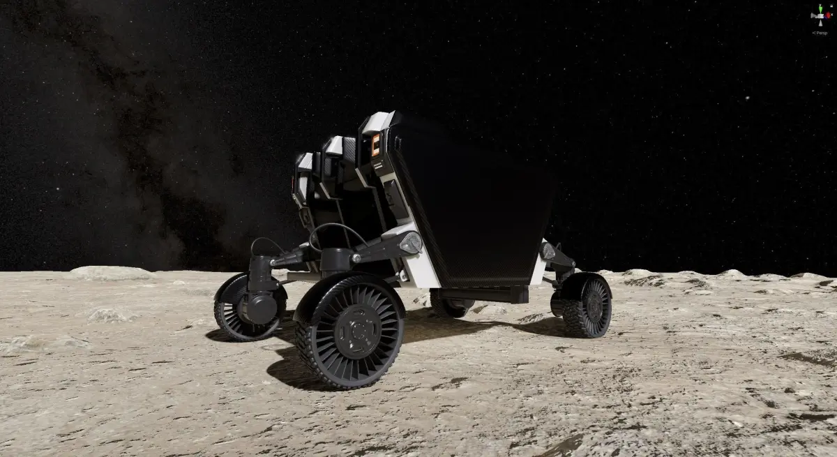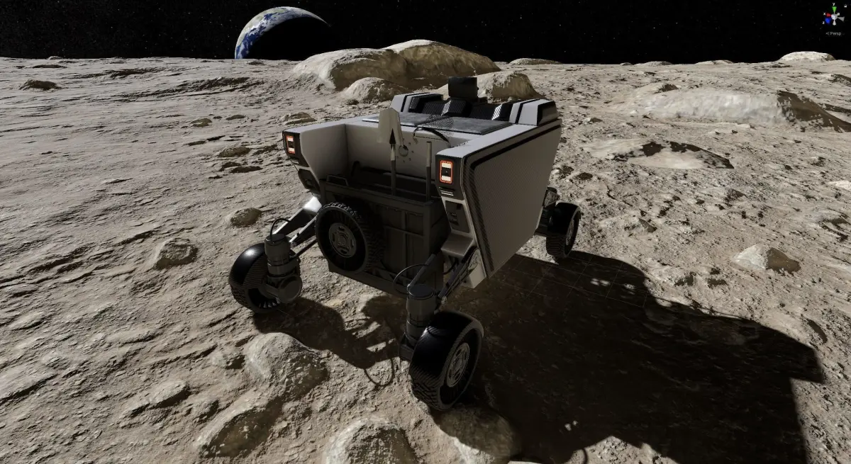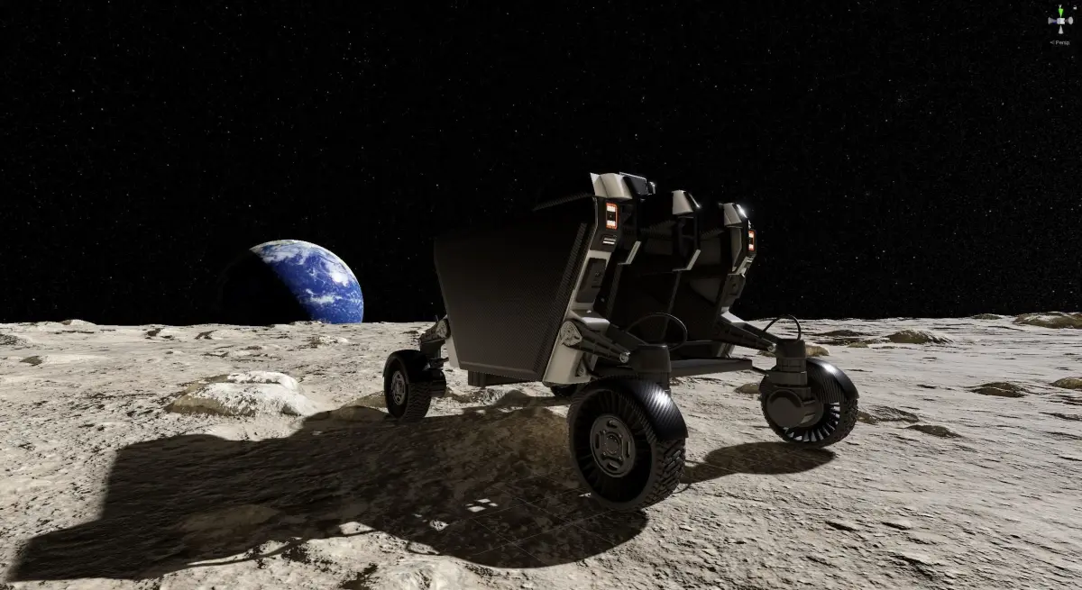 FLEX (Flexible Logistics and Exploration) rover on the surface of the moon, high quality 3d model. Ready for render in 3ds max with V-Ray. Unity project included (HDRP, URP, Built-In render pipelines)
