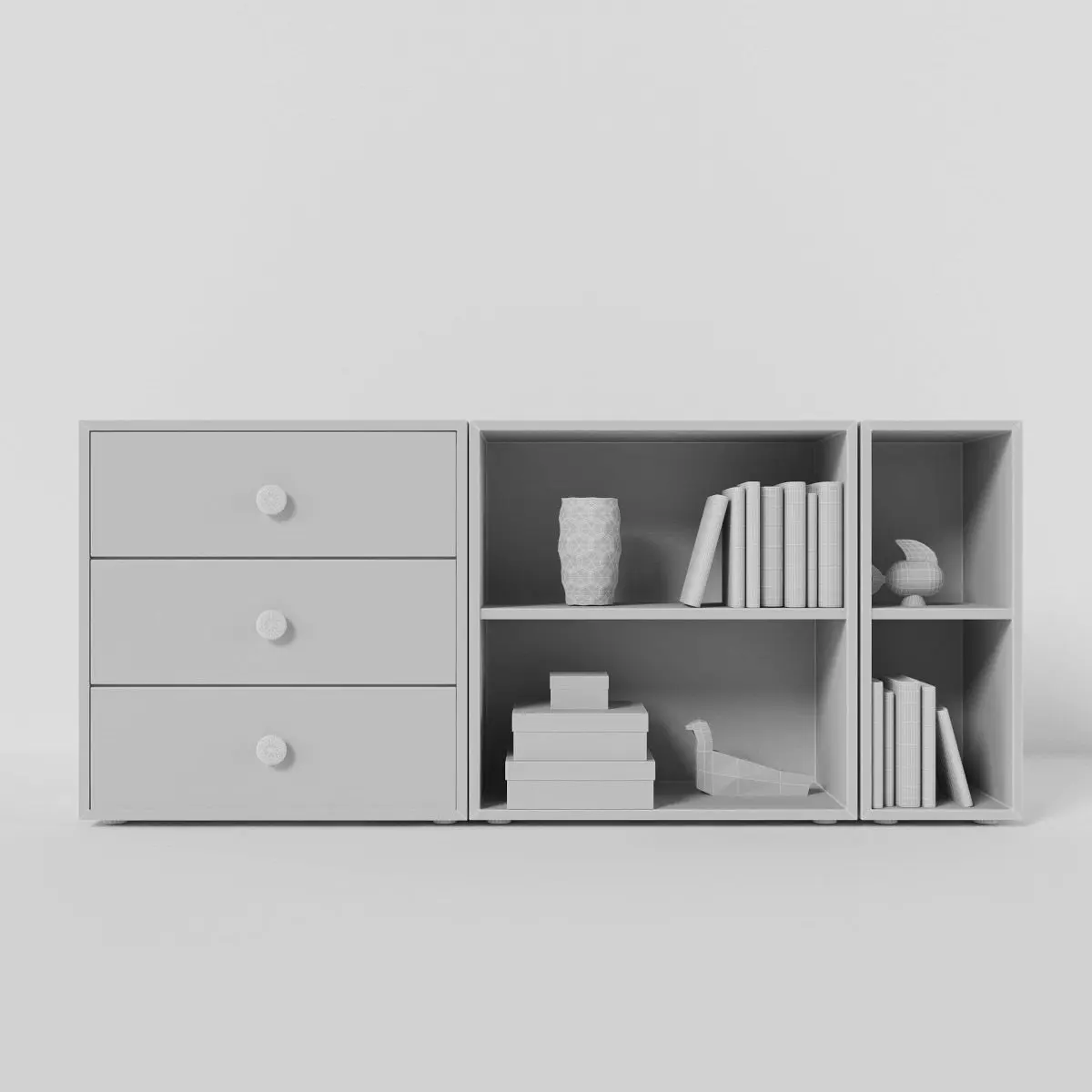 POPSICLE chest of drawers with 3 drawers incl. feet. POPSICLE bookcase with 1 shelf incl. feet. POPSICLE narrow bookcase with 1 shelf incl. feet. The chests and bookcase are a perfect storage solution for toys or clothes and fits underneath the mid-high POPSICLE bed or could be used freestanding. They are made of MDF with oak veneer and has three coloured handles. The POPSICLE collection is designed by the Danish furniture designer Herman Studio.You can find 3ds max file, all textures, obj, mtl, fbx. CHEST WITH 3 DRAWERSSPECIFICATIONSDEPTH: 43.50 cmHEIGHT: 74.20 cmWIDTH: 72.00 cmCOLOR: Oak/Cherry