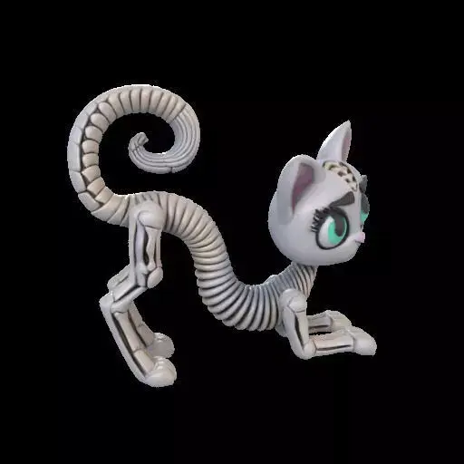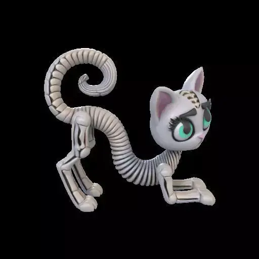 This flexible 3D-printed cat blends cute and creepy Monster High aesthetics with bendable limbs and tail, perfect for Halloween décor or playful display. Expressive eyes, arched pose, and stylized details make it fun and dynamic.