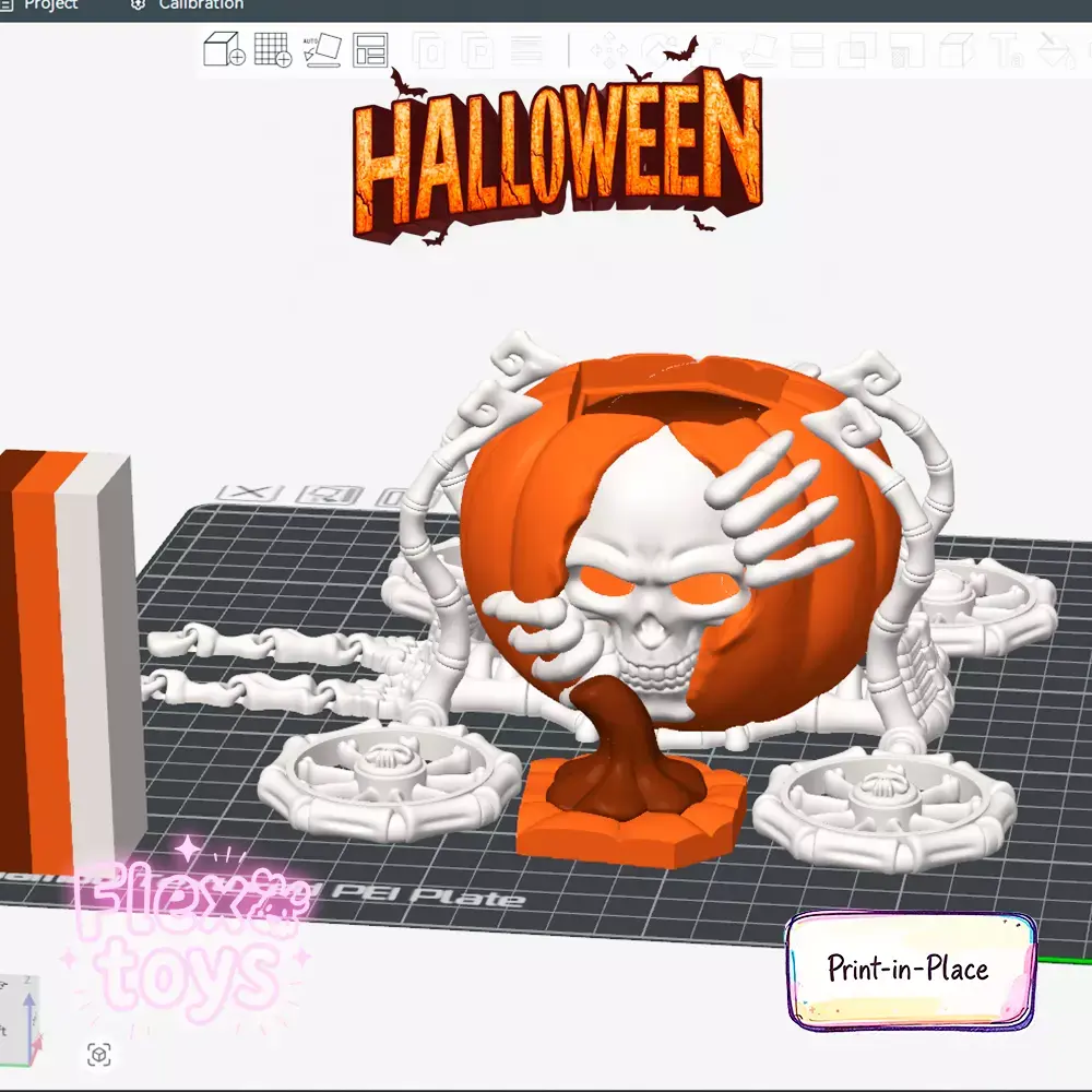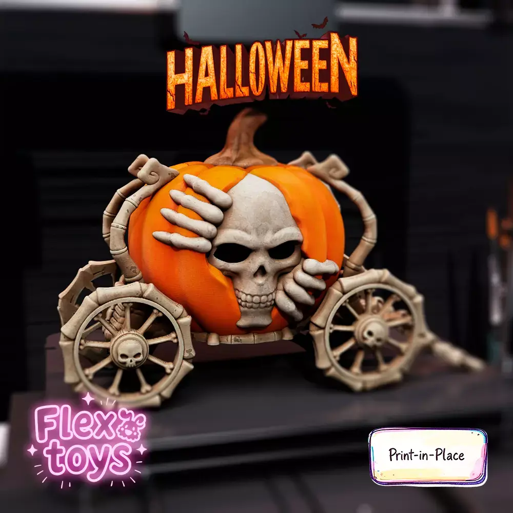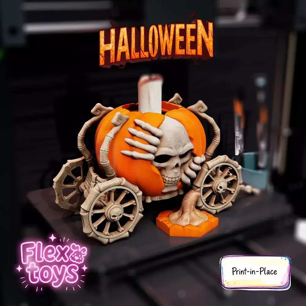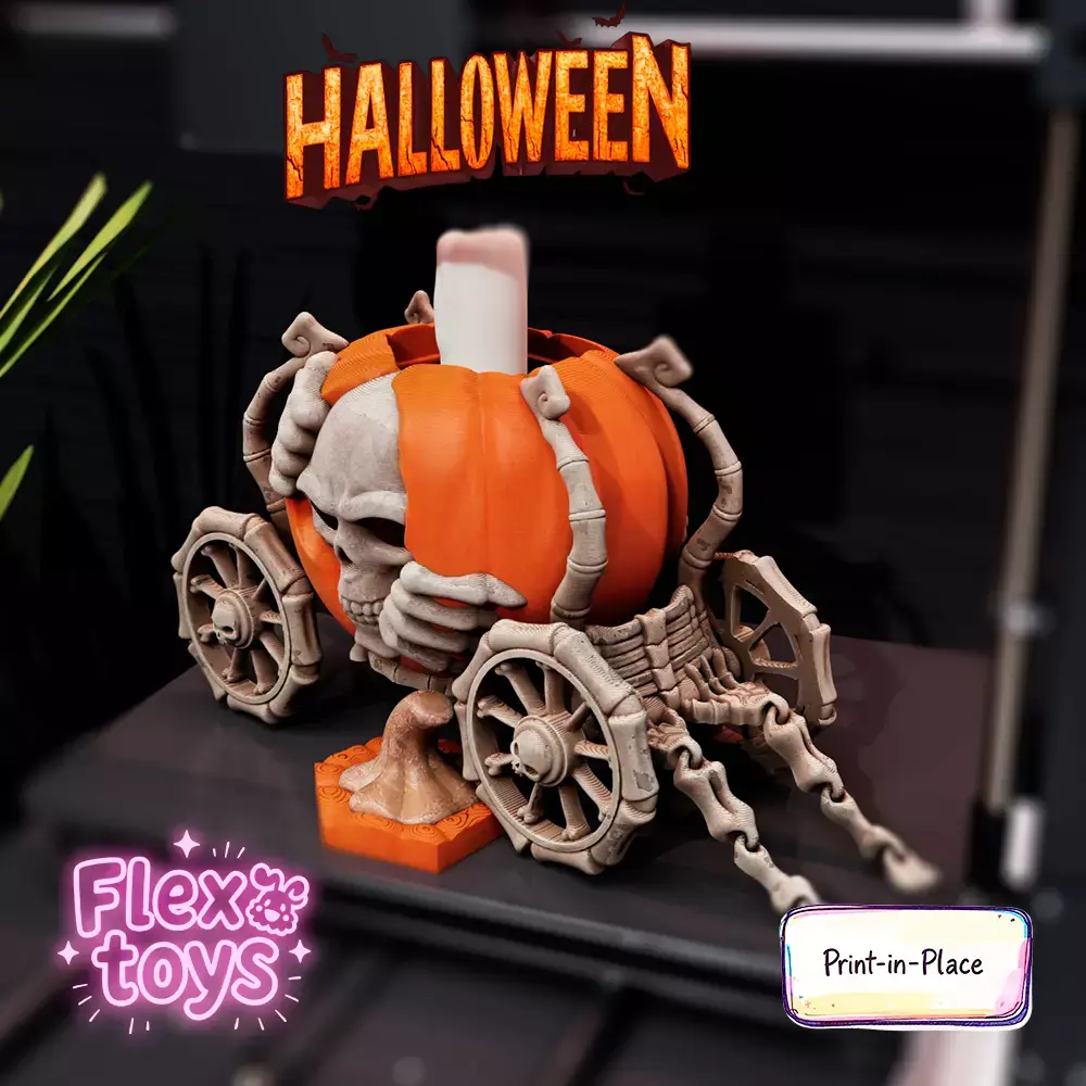 Bring a touch of magic to your 3D prints with this flexible pumpkin carriage on wheels, combining a playful toy with a decorative candle holder. This print-in-place model requires no supports or assembly, making it perfect for home décor, Halloween setups, or as a unique gift.