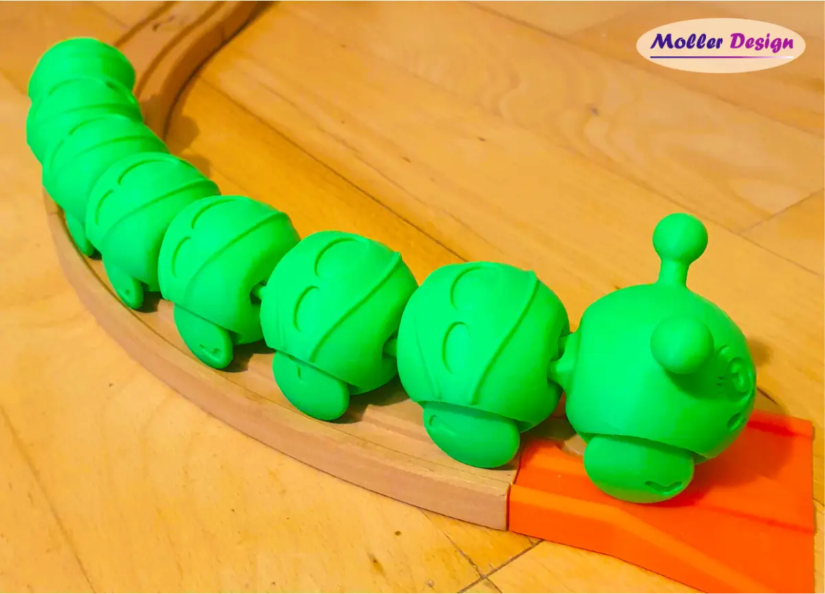 This is a flexible, articilated caterpillar on wheels. Children (or maybe yourself) can play with it on the floor or, for example, on Brio wooden railway tracks. Has great play value.