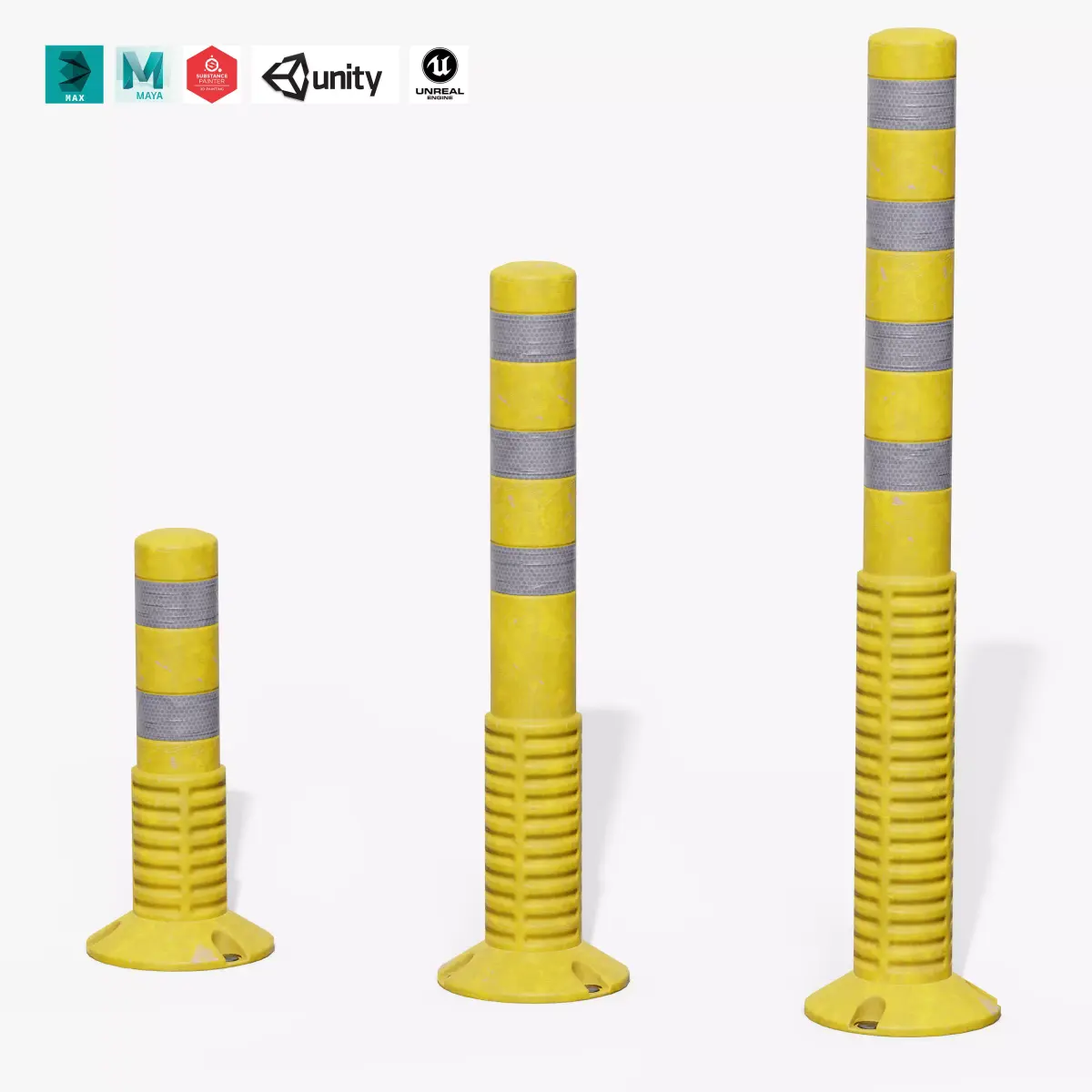 AAA Game-Ready Low-Poly Flexible Delineator Post – Optimized for Unreal & Unity