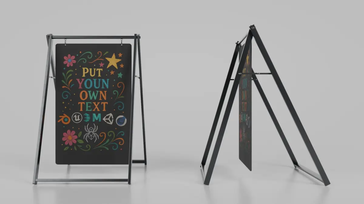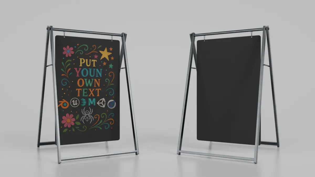 A professionally curated set of high-quality 3D chalkboard assets, combining six chalkboard models, including customizable sidewalk signs, countertop displays, and wall-mounted boards. Designed for architects, game developers, and 3D artists creating realistic commercial, educational, or hospitality environments.