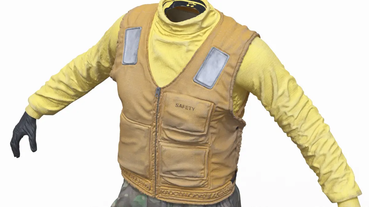 Flight Deck Safety Vest and Camouflage Pants Yellow is a 3d model of a tactical outfit, often used in various professional environments for safety and utility.