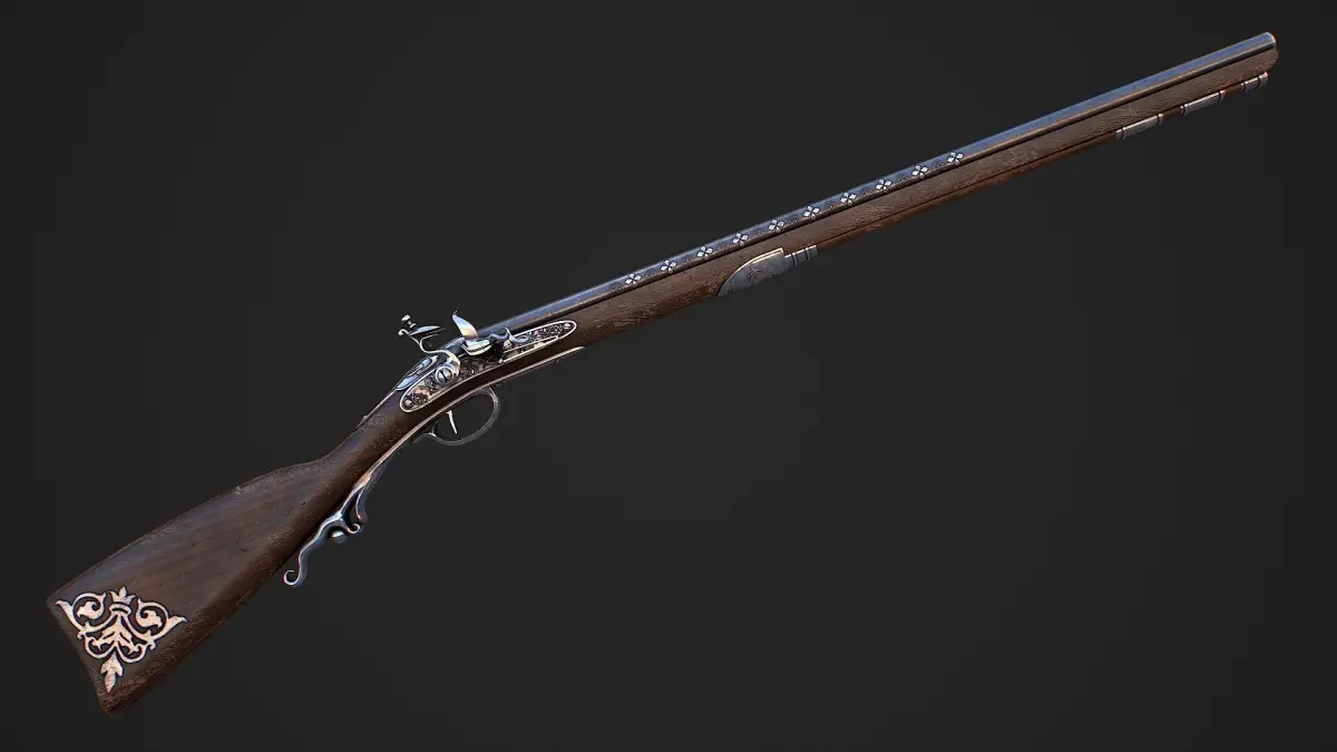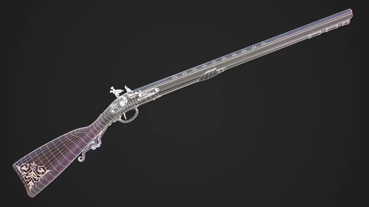 Hello. This is a high definition quality polygon of a Flintlock Musket 3D Model with PBR textures. Extremely detailed and realistic. Suitable for movie prop, architectural visualizations, advertising renders, games, VR, AR and other. The archive includes Obj and FBX, Marmoset scene, textures for the Unity: Base color, Metallic, Mixed AO, Normal_OpenGL, Roughness. And also included in the archive textures for UE: BaseColor, Normal, OcclusionRoughnessMetallic. All textures are 4k resolution. The number of materials corresponds to the number of main objects in the scene. There are 6 materials in the scene. The model contains 6 objects: Flintlock_musket, Flintlock_musket_ramrod, Flintlock_musket_shelf_flint, Flintlock_musket_spring, Flintlock_musket_trigger, Flintlock_musket_trigger_1.