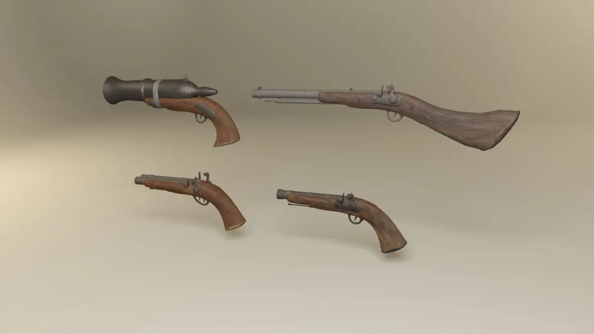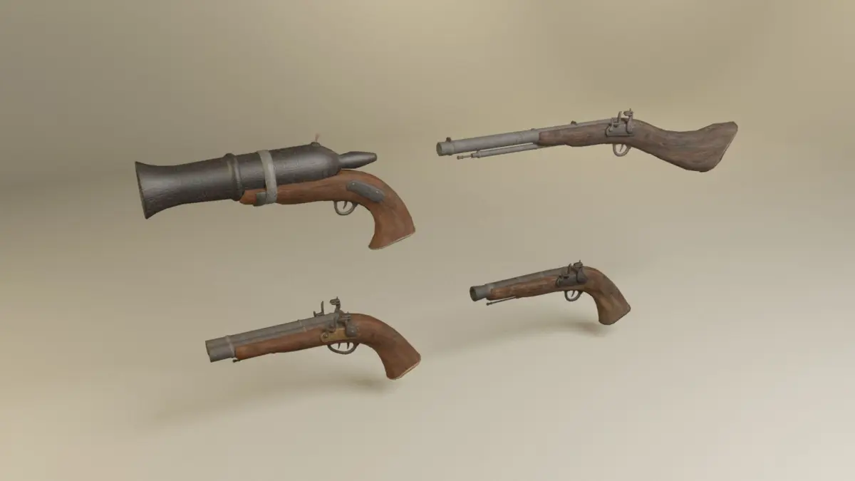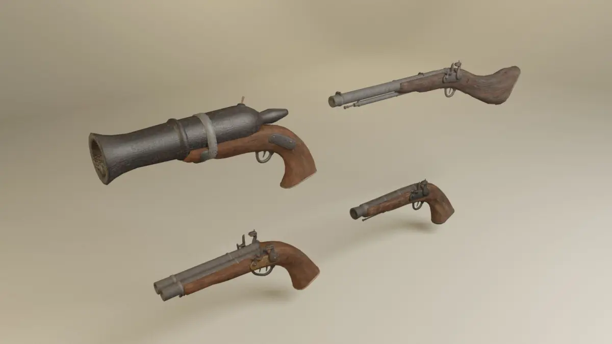 Ranged weapons for pirates, soldiers in an era where violence was the only solution. These guns and shotguns and cannons are low poly 3d models for your game projects like MMORPG, strategy, pirate, third person, fantasy, medieval, etc.The models were originally modeled in 3ds Max 2012 and rendered with Mental Ray.